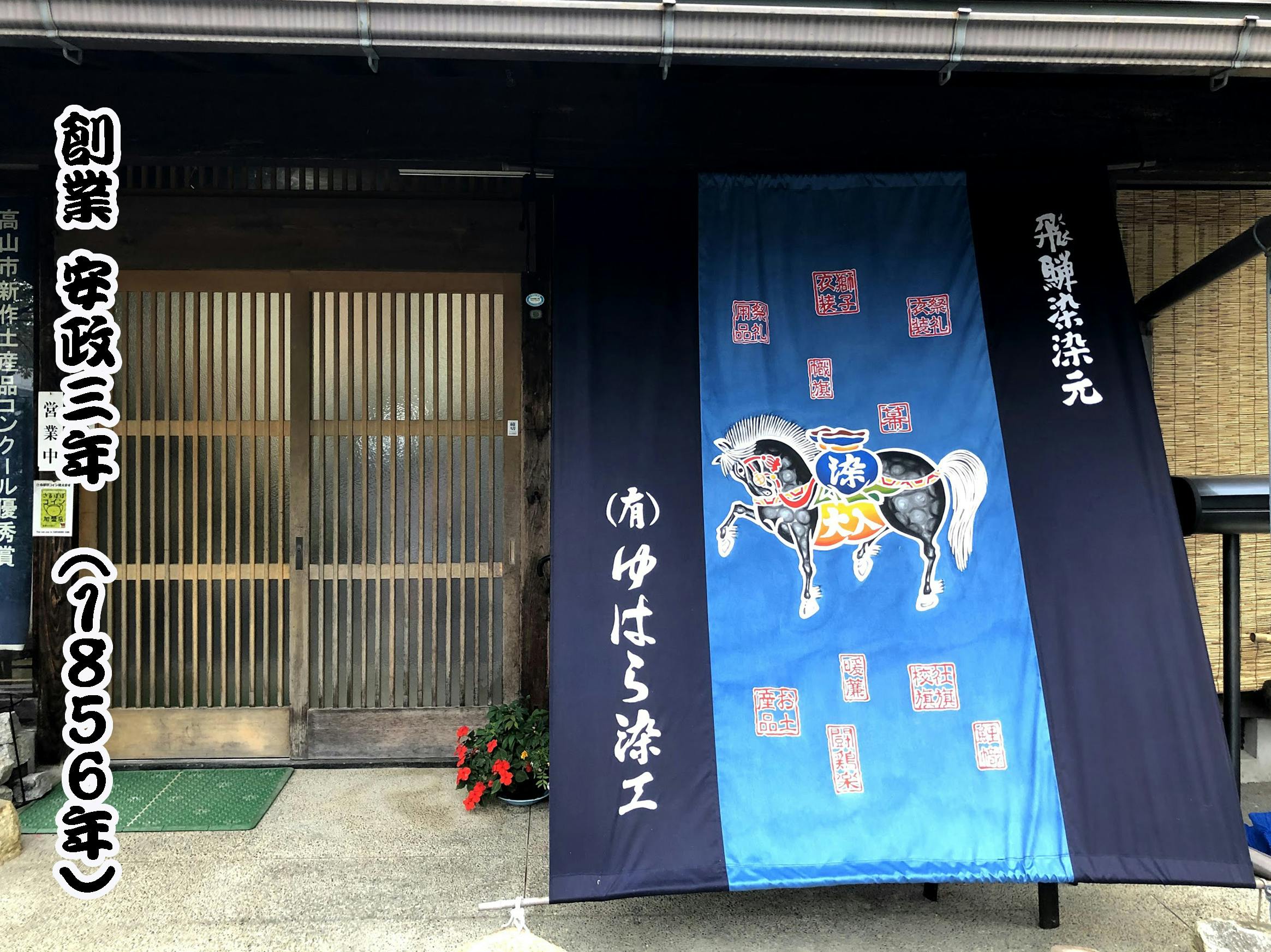 全国的にも有名な高山祭をはじめとする飛騨独特の闘鶏楽の衣装、豪華絢爛で名高い高山祭屋台組衣装や獅子舞衣装、神社の大幟りや幕などを日本の伝統染色技法にて製作している有限会社ゆはら染工は、飛騨の地で1856年の創業以来170年余りの間、飛騨の祭り文化を染め物を通して支えています。