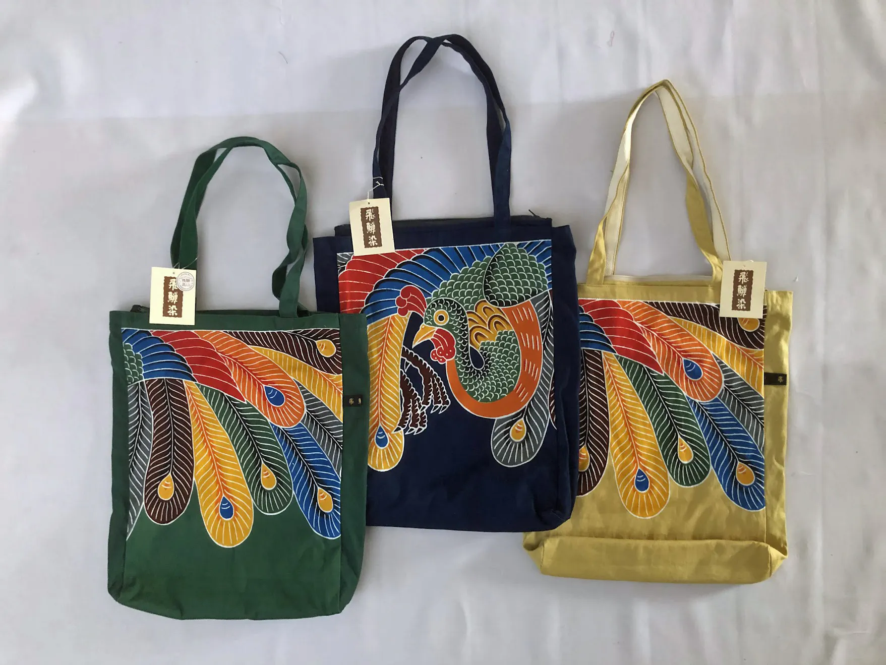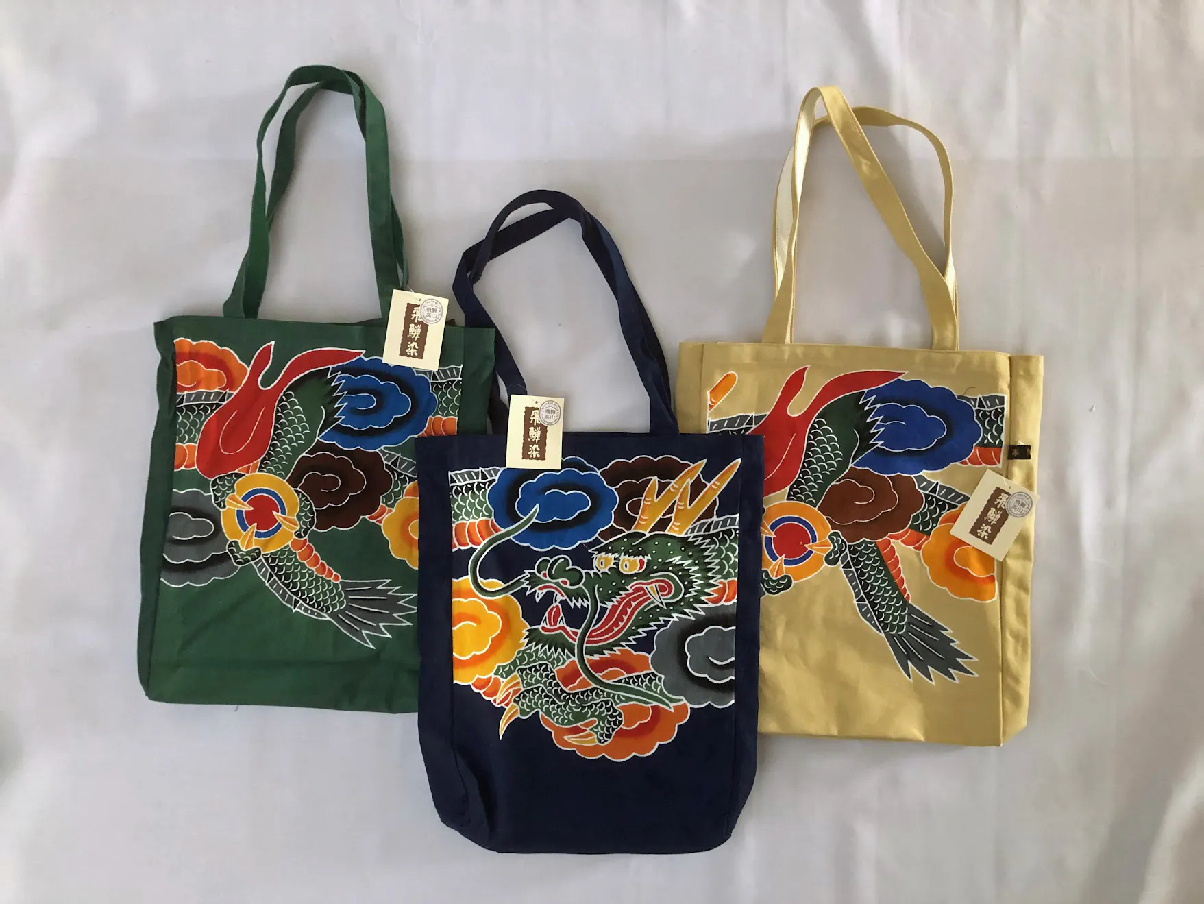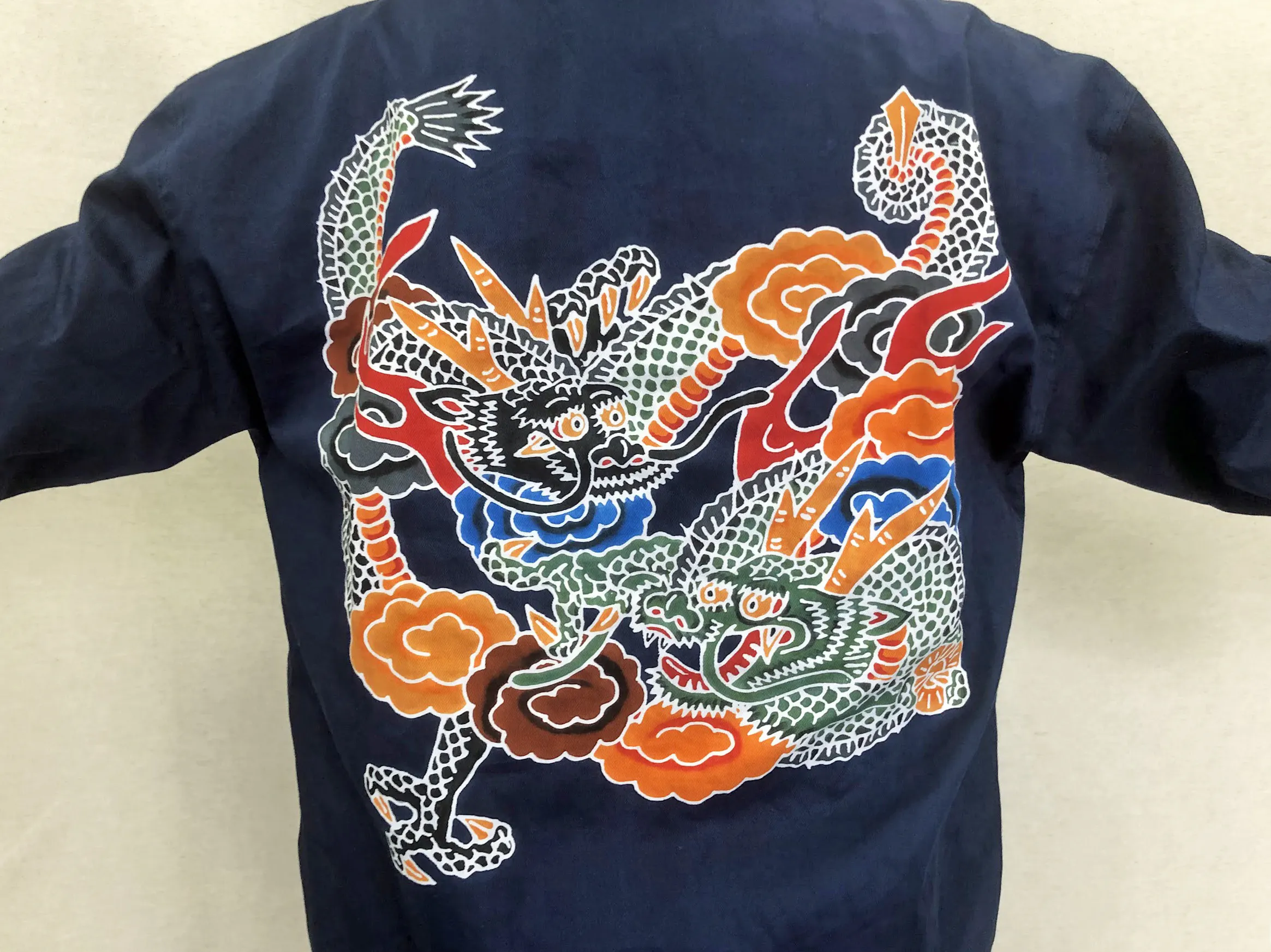返礼品には試着体験の衣装と同じ、日本伝統の染色技術をもちいた製品の制作を進めています。