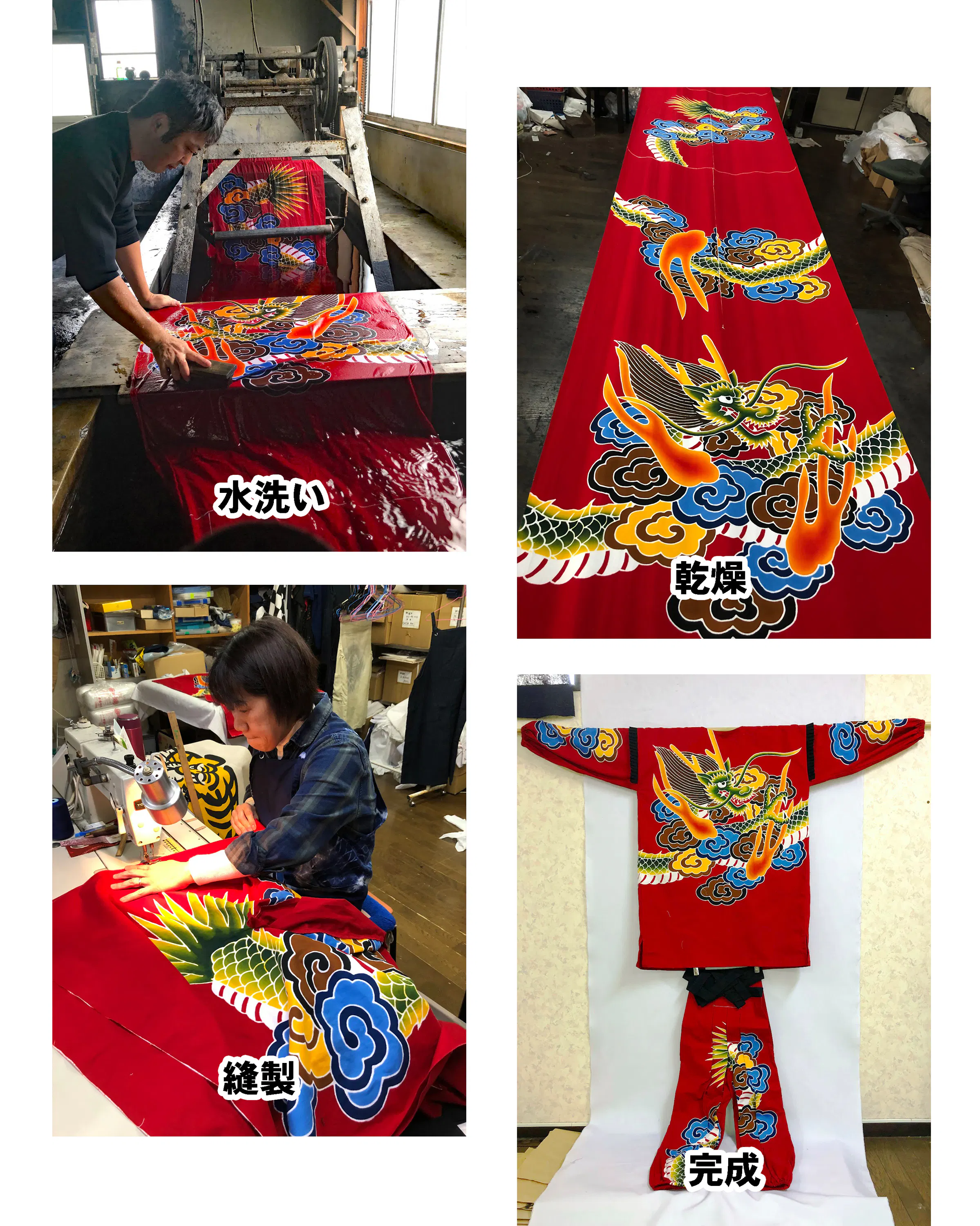 当社の強みは日本の伝統的染色技法を用いて、白生地への染色から縫製までを一貫製造している点であり、他社では製造できないような特殊な衣装なども製造することができます。