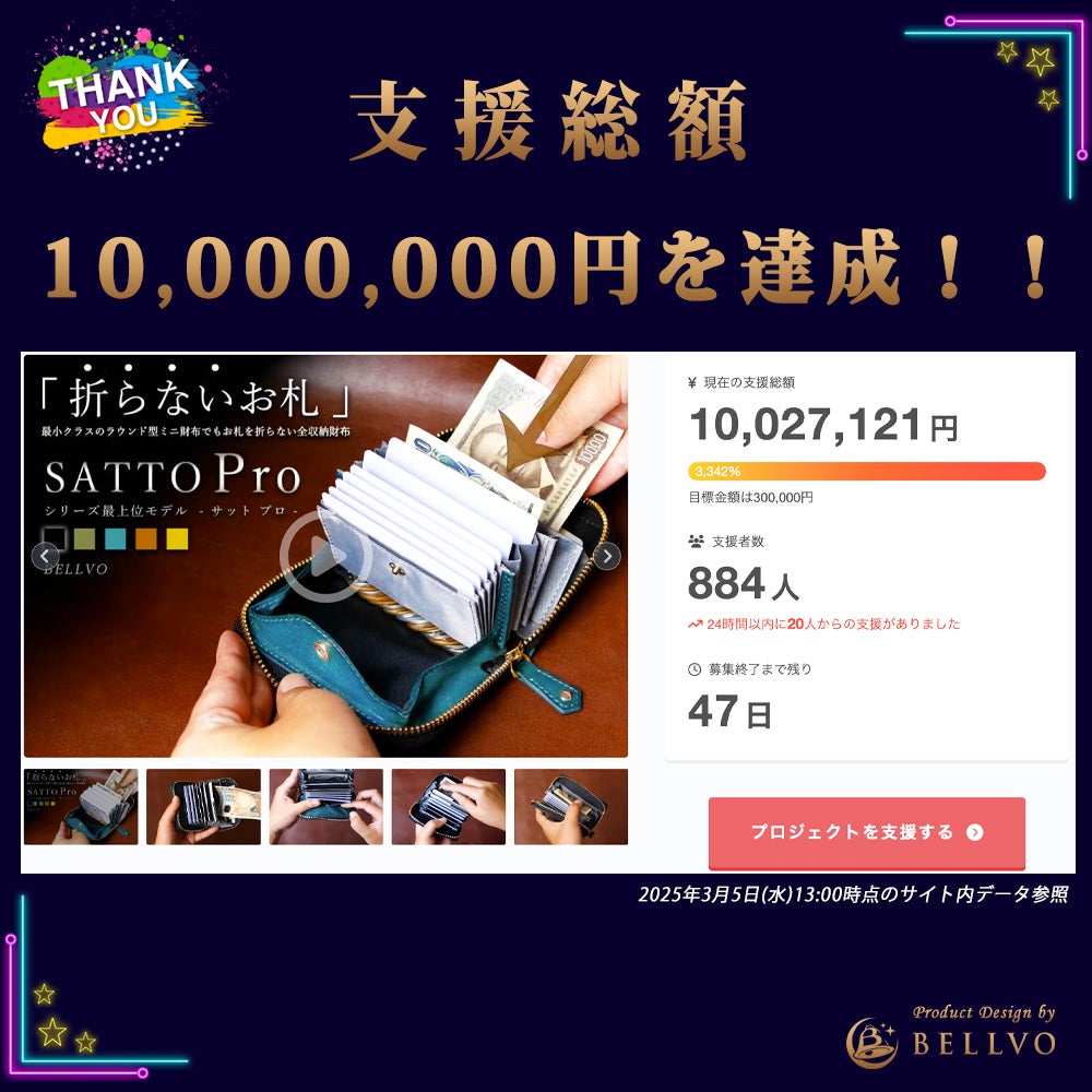支援総額が1,000万円を達成いたしました!!パチパチパチ