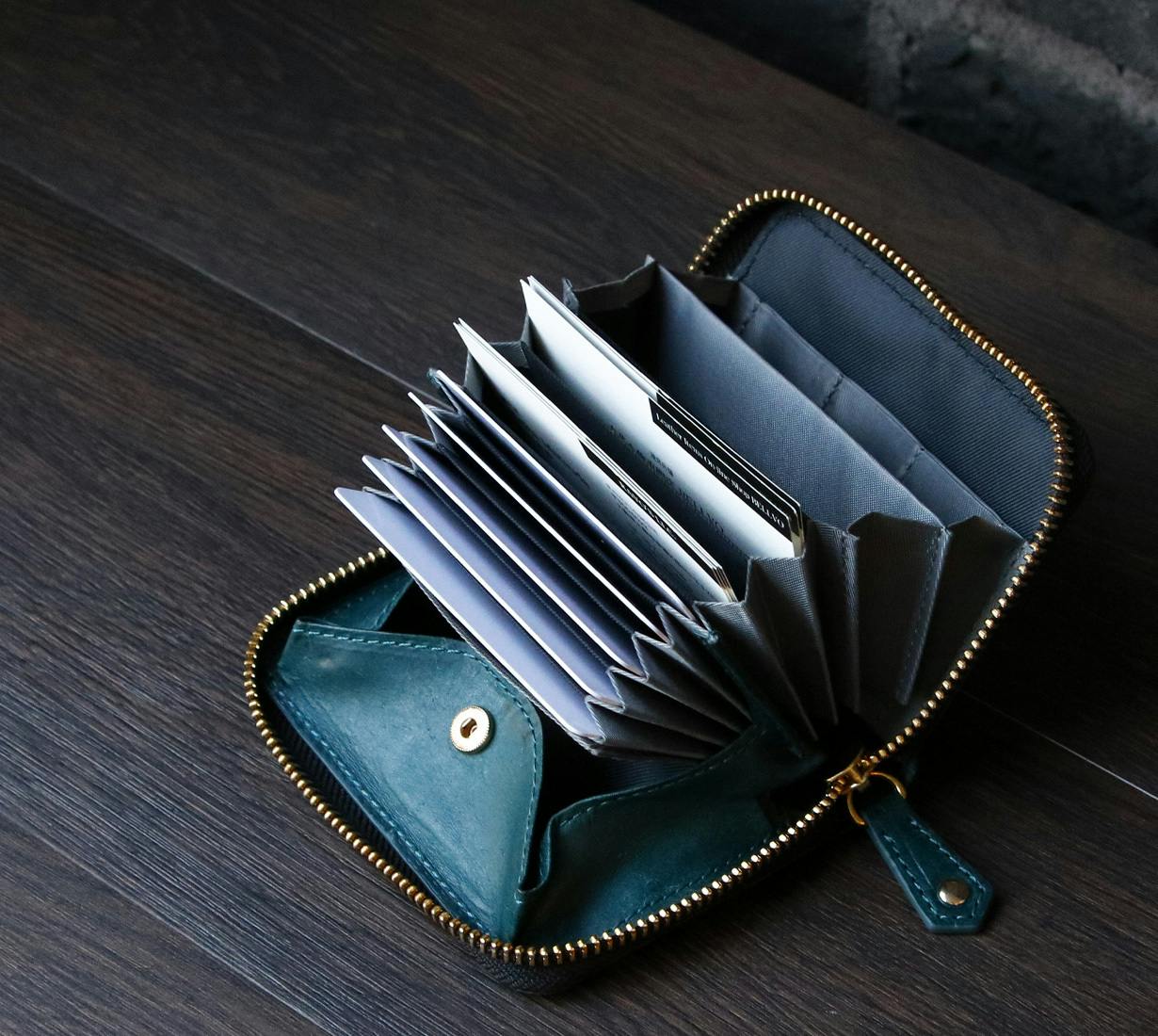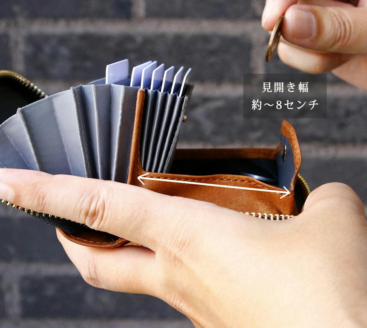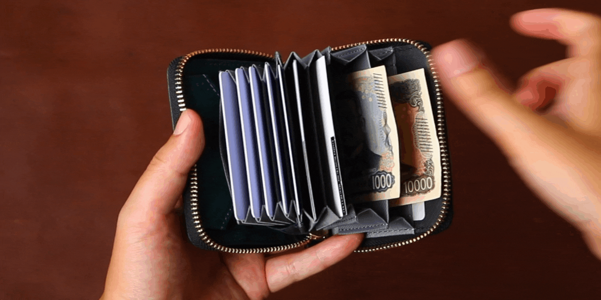 その結果、財布を閉じると硬貨は滞留せず自然と底に貯まる仕組みとなっています。