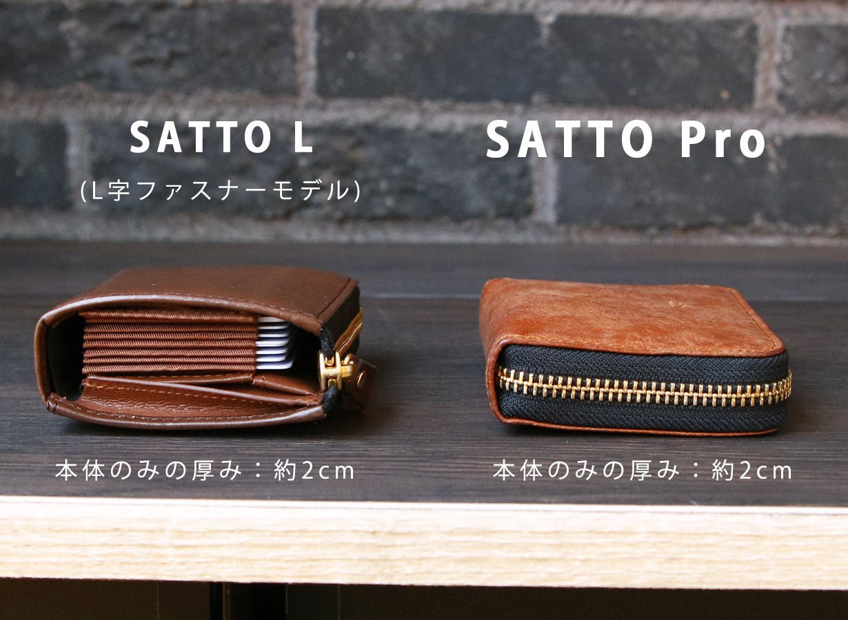 SATTO L(画像:左)はPro同様に2cm程度の厚みですが、L字ZIPのためファスナーがない面はどうしても膨らみが大きくなってしまいます。