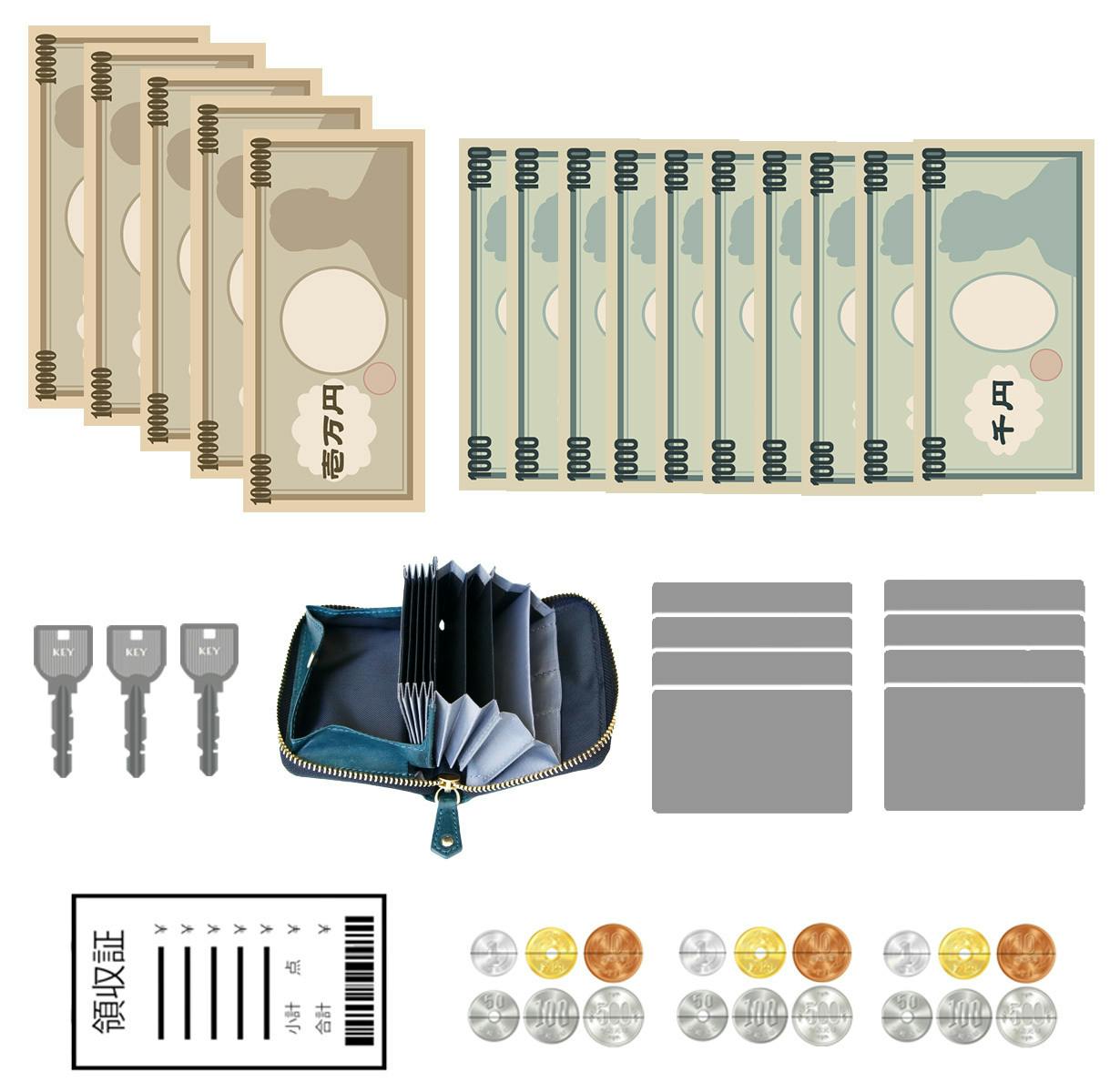 紙幣×15枚 硬貨×15枚 カード×8枚 鍵×3本!これだけ入れてもスリムまま愛用いただけます。
