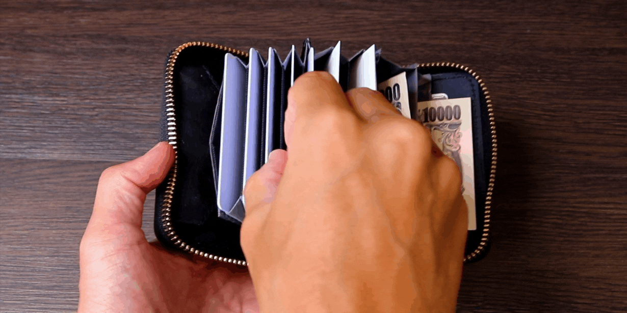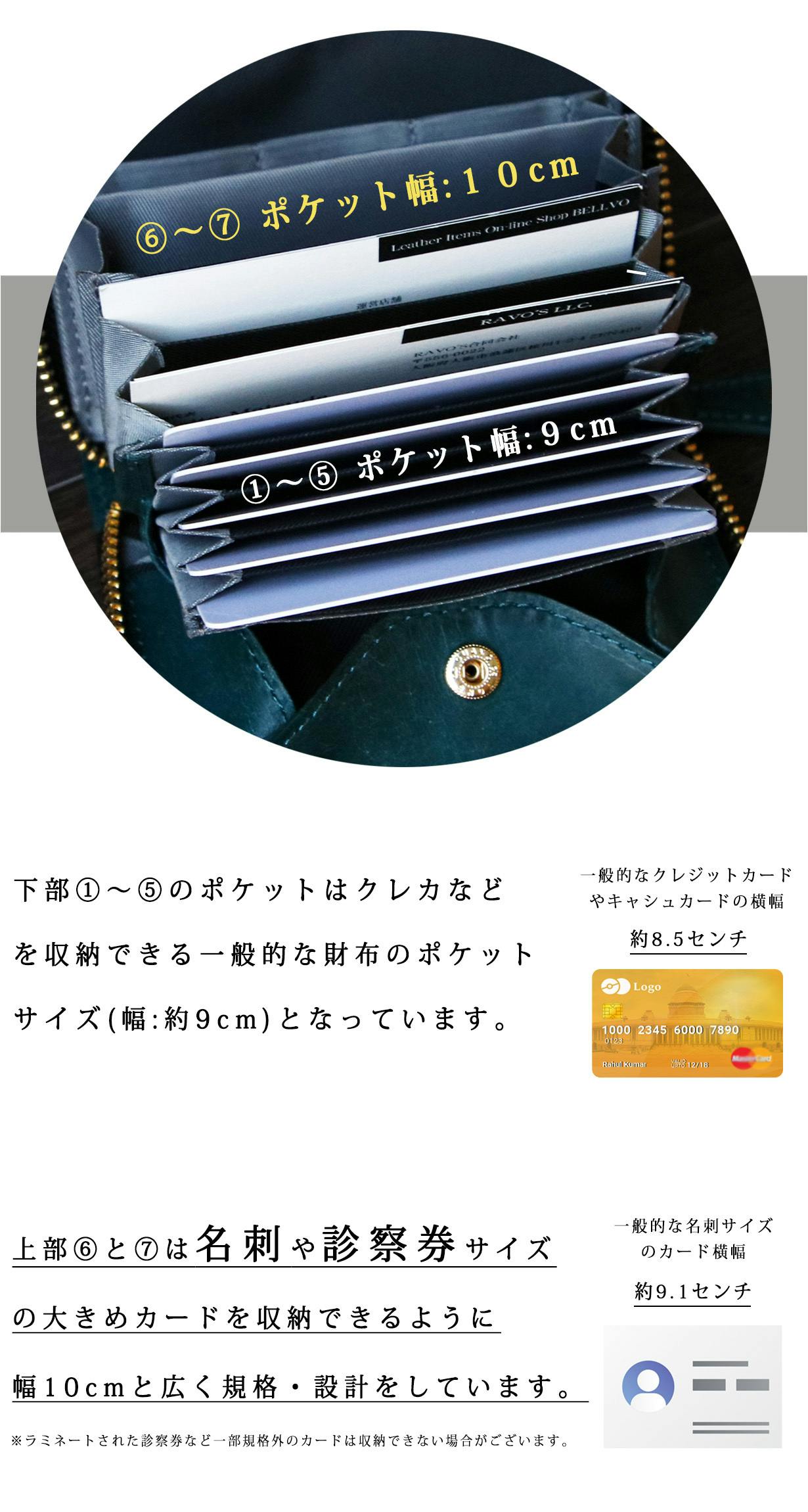 ポケット幅が広くなったことで多種多様なサイズのカードを収納することが出来ます。