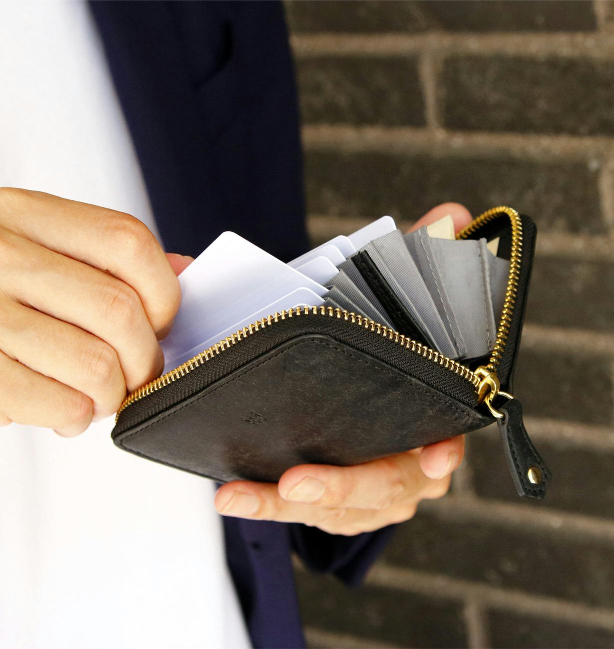 また、ポケットからカードの上部が少し出ているので、指の細い太いや手の大きさに関係なく、そしてよくあるカードの引っ掛かりもなくサッとスムーズに取り出せます。