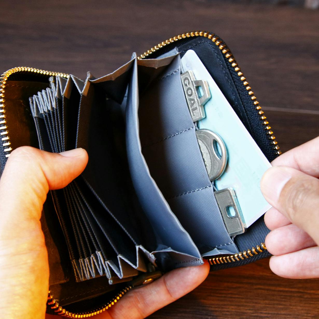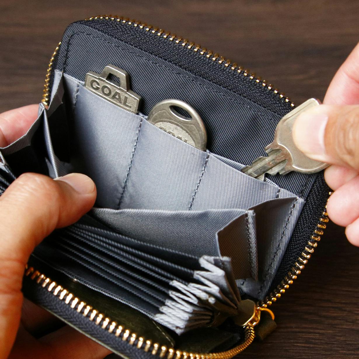 カード、お金にプラスして鍵も最大3本まで収納可能。