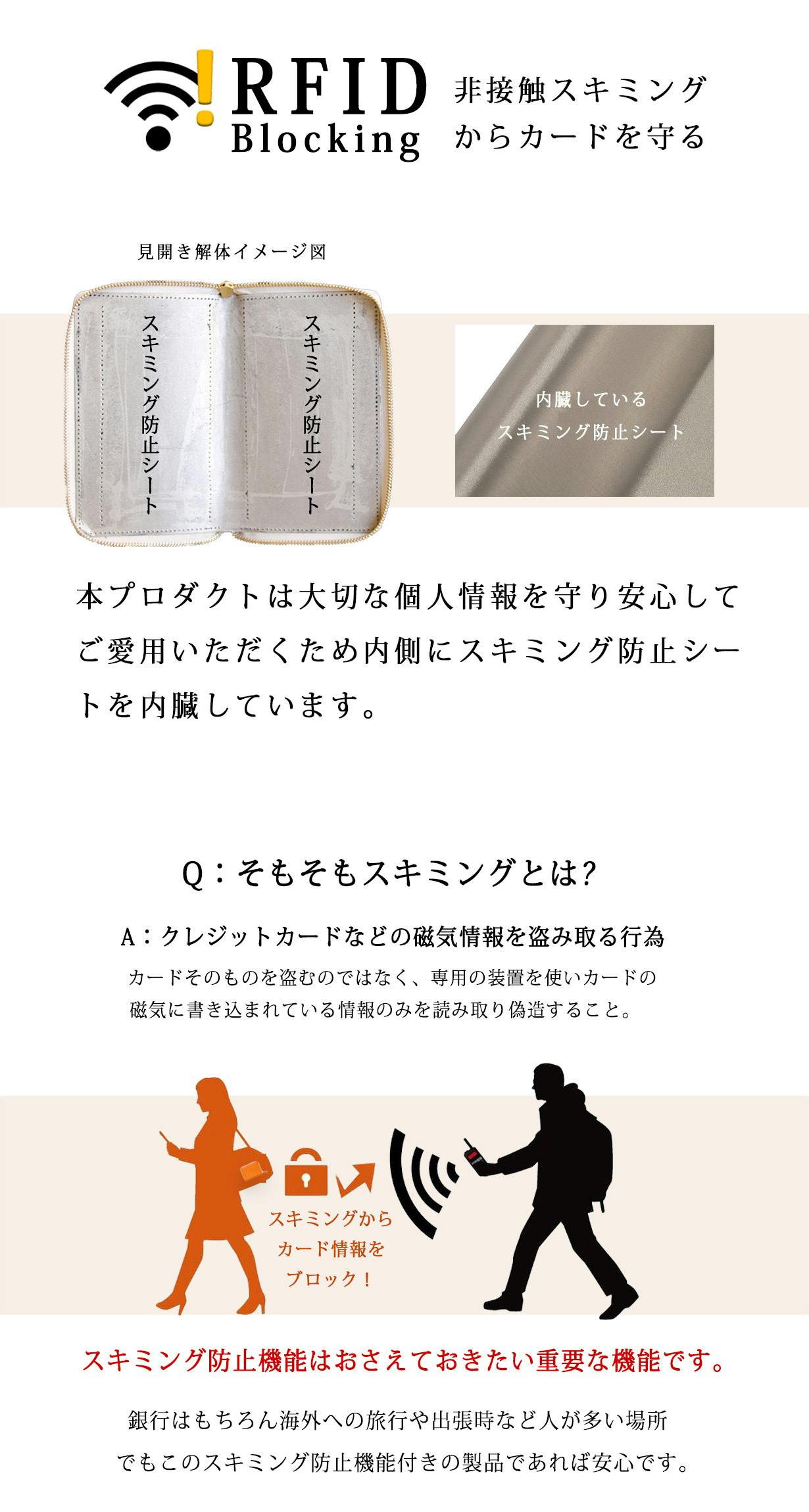 ※ICカードポケット箇所はスキミング防止シート(下記詳細)が干渉しないのでタッチ決済も改札通過も問題ございません。