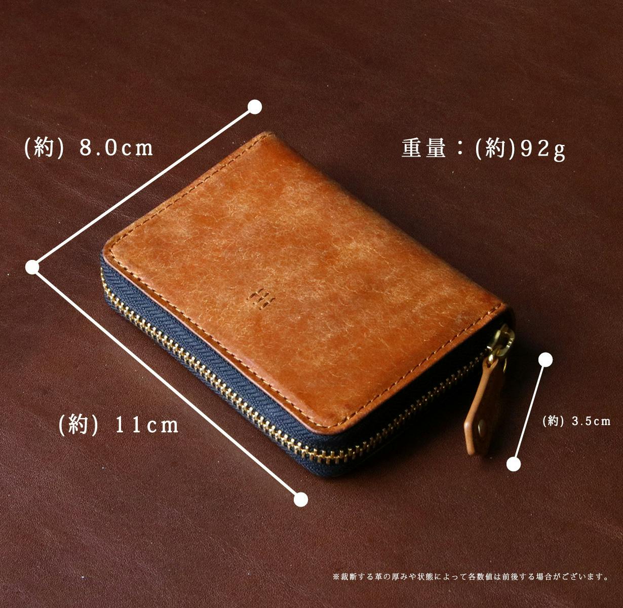 【寸 法】(約) W11.0cm × H8.0cm × D2.0cm ※革の裁断箇所により多少前後する場合がございます。