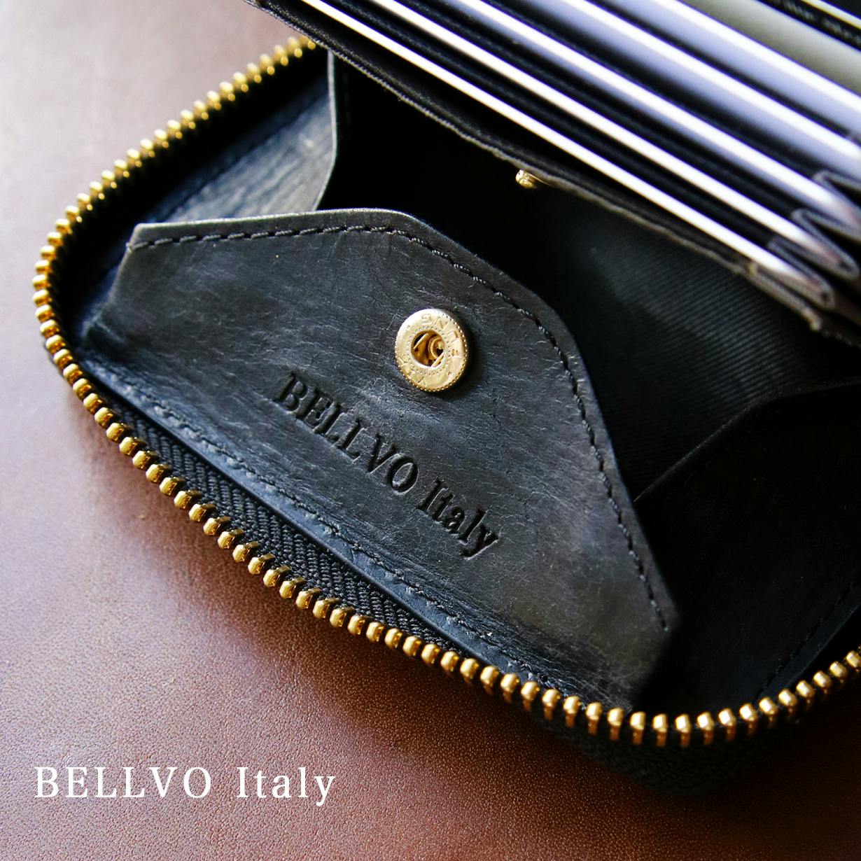 イタリアンレザーを使用した初のモデルとして小銭入れ箇所にItalyの文字をプラスしたロゴが入っています。※ロゴ名称は予告なく変更する場合がございます。