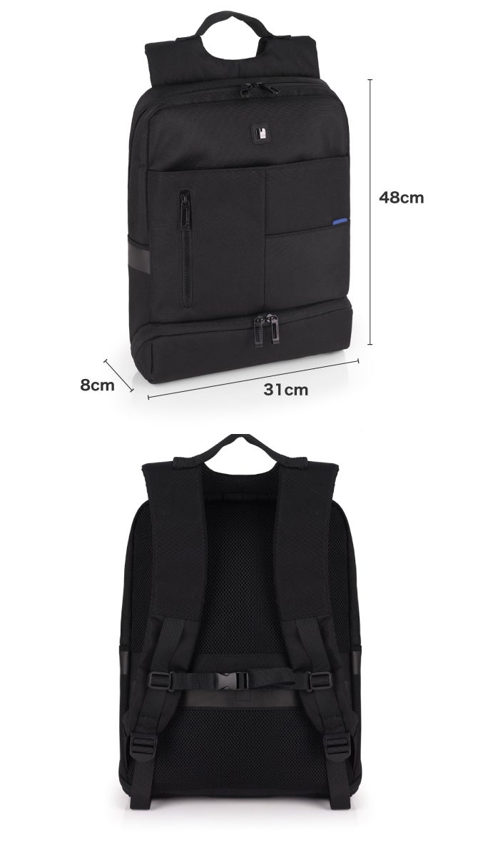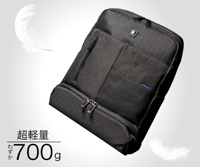 このビジネスリュックは3つのポケットから構成されており、シンプルながらも使いやすい設計となっています。