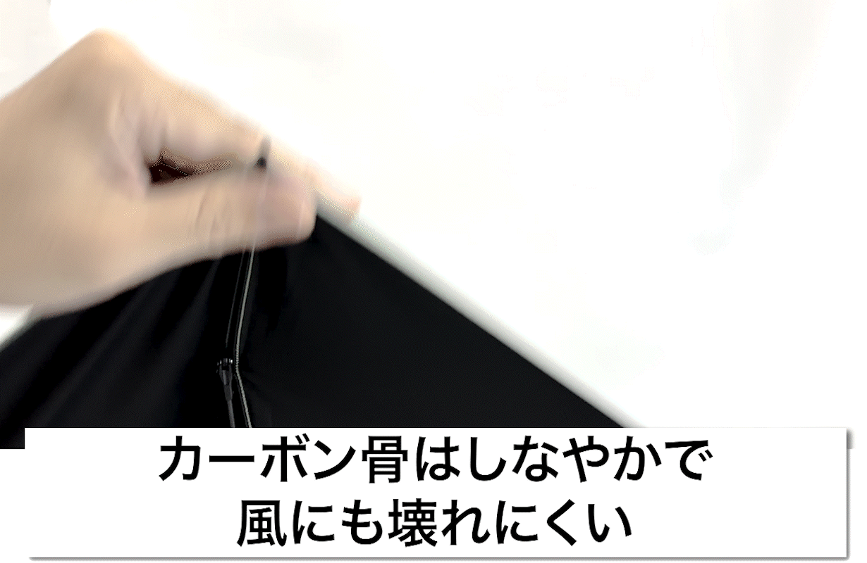 A.強風にひっくり返えることがありますが、カーボンの骨ですのでしなやかで壊れにくくなっております。ただし、軽いので強風にあおられるのは避けられません。台風時等のとても強い風の下で使われること壊れることもあるでしょう。強風時には使用をしないでください。