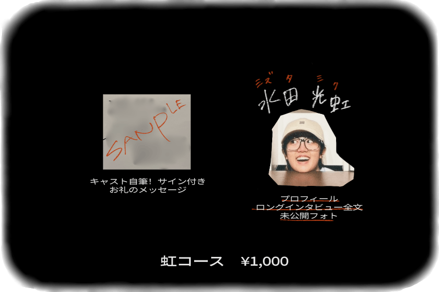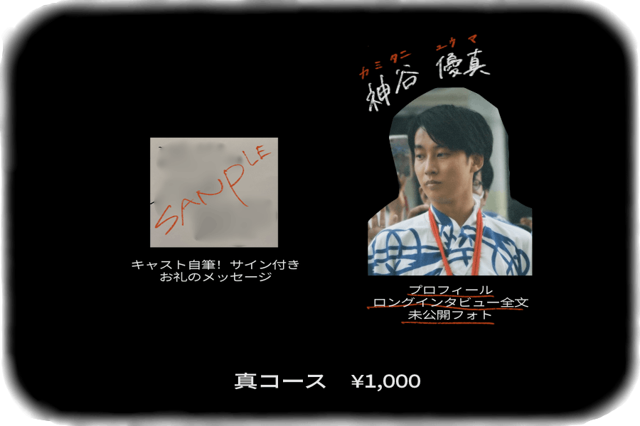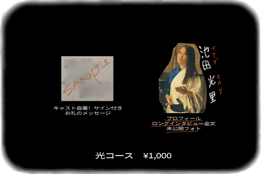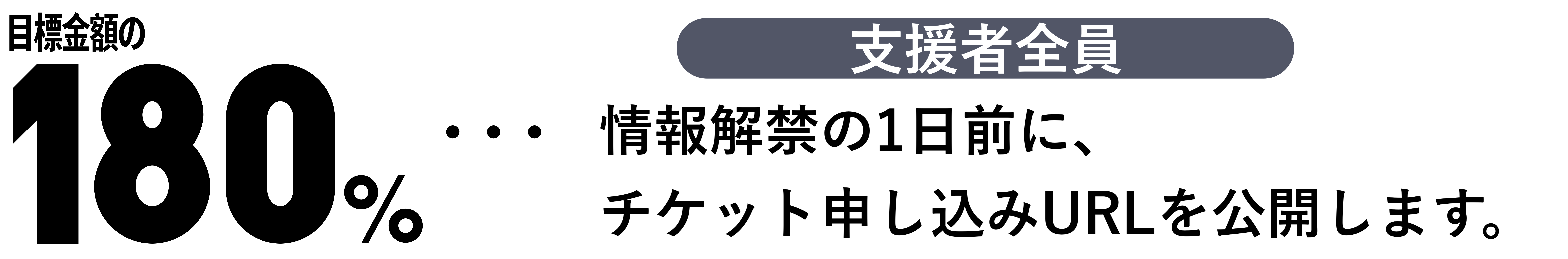 ・目標金額の180%を達成した際に、全ての支援者の方が優先的に劇場に足を運んでいただけるよう、情報解禁の1日前に、チケット申し込みURLを公開します。(支援者限定配信の活動報告+メールでの配信)