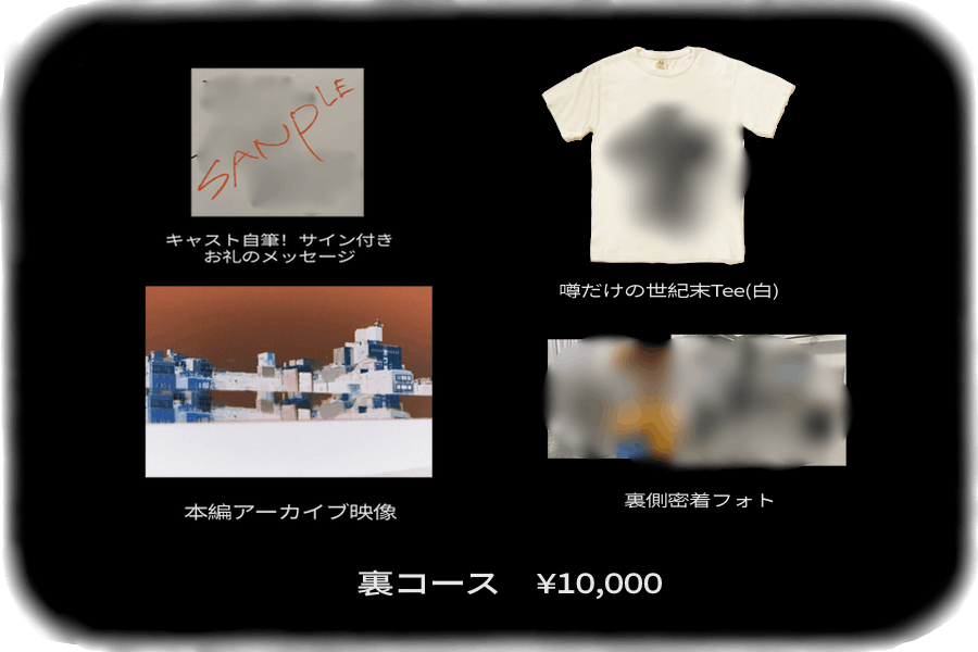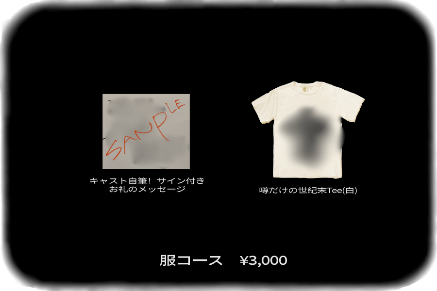 ※「噂だけの世紀末Tee(白)」・「噂だけの世紀末Tee(黒)」は7月頃から順次発送予定です。(公演前発送)