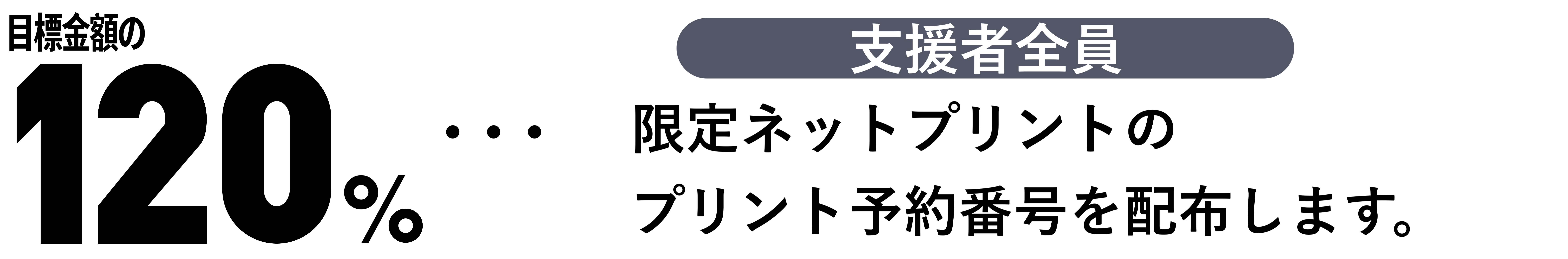 ・目標金額の120%を達成した際に、全ての支援者の方限定でネットプリントの予約番号と、
