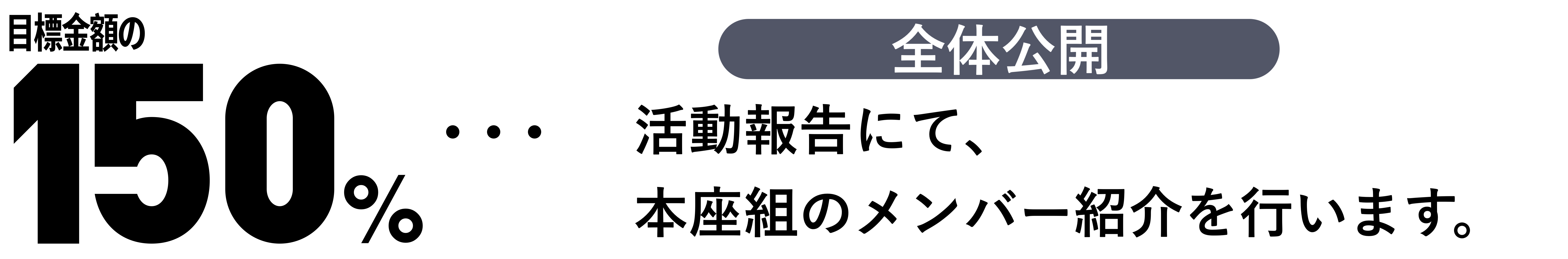 ・目標金額の150%を達成した際に、活動報告にて本座組のメンバー紹介を行います。