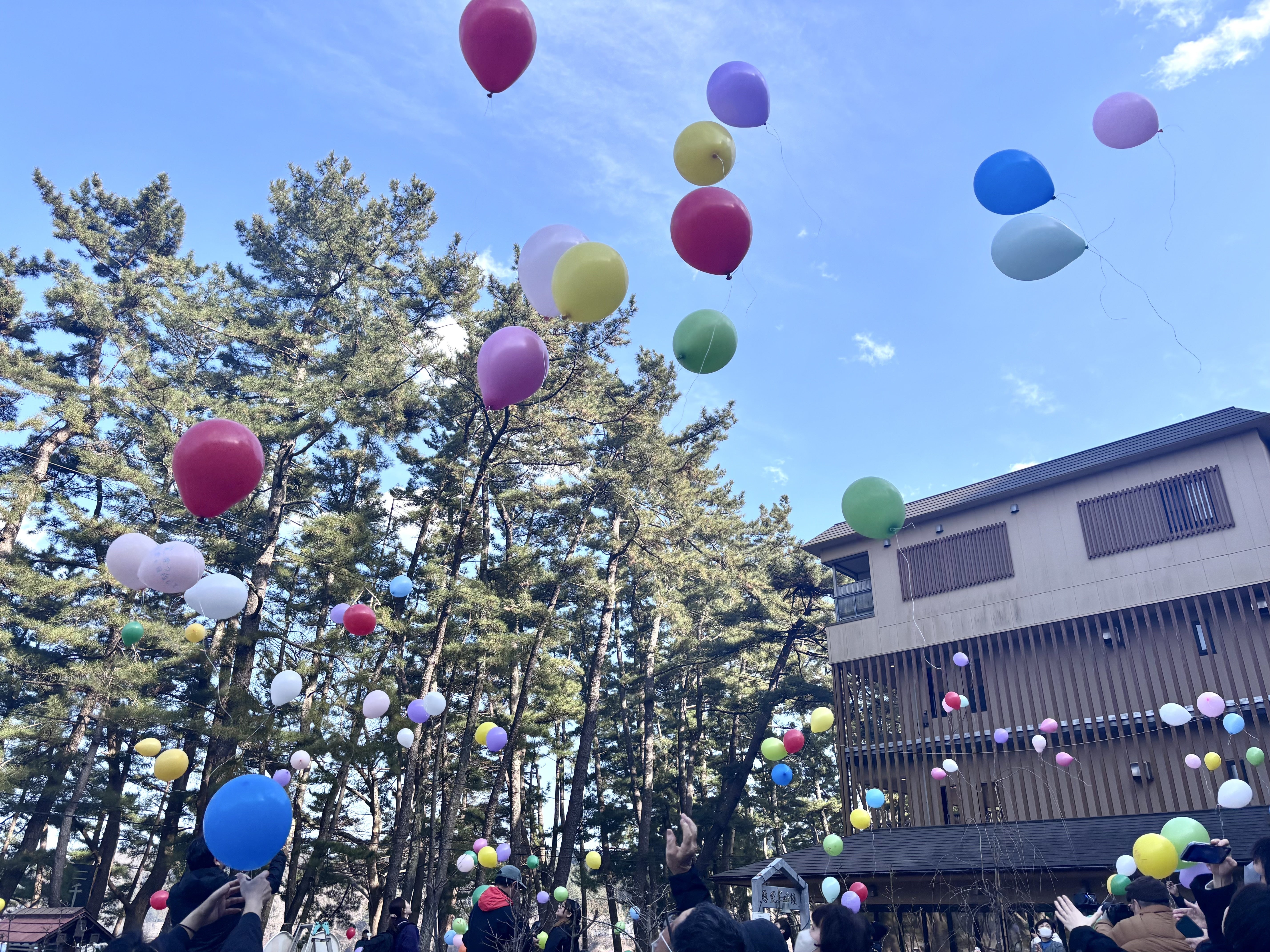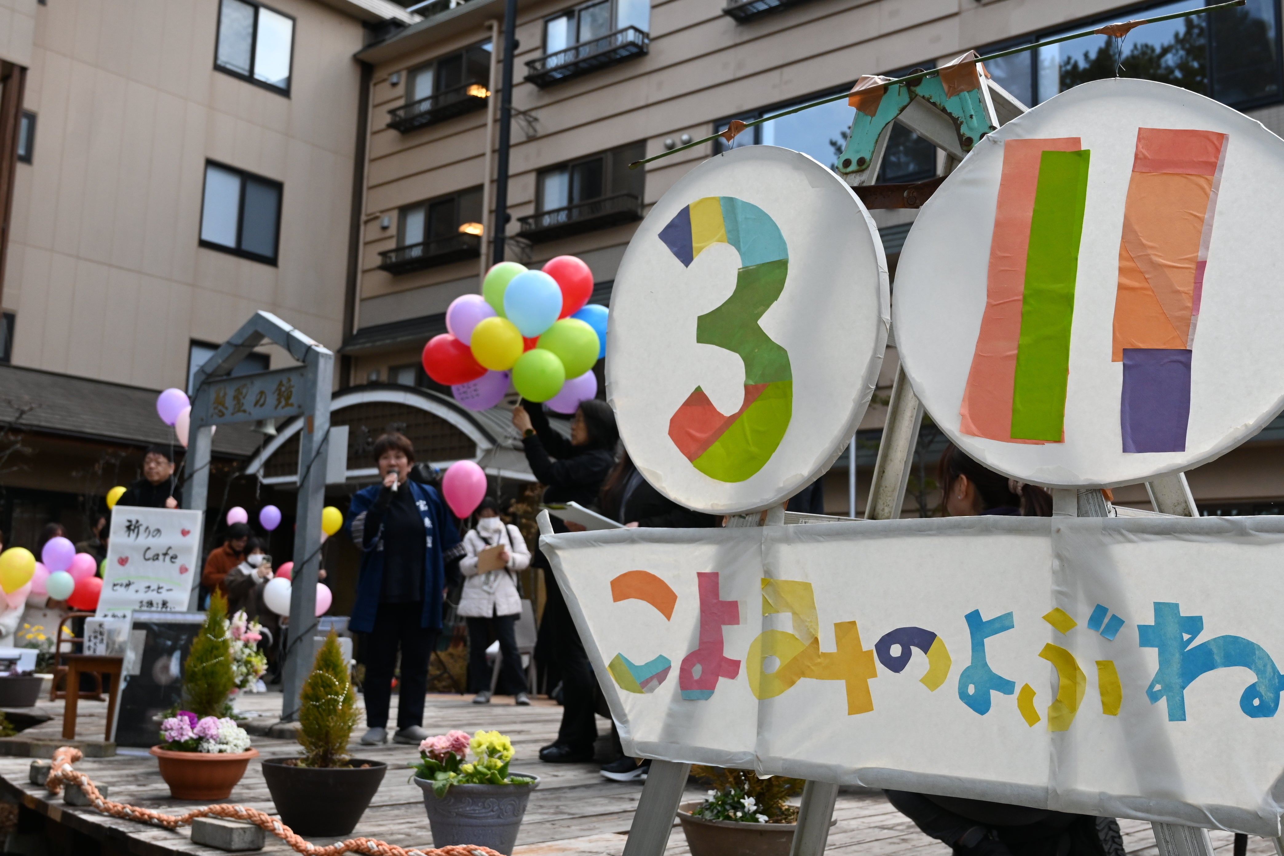 学生が市内の小学校9校、中学校4校の400人の児童生徒から集まった追悼の思いと未来への希望を込めたメッセージの一部を読み上げ、14時46分の黙祷後、祈りの風船を空に飛ばしました。
