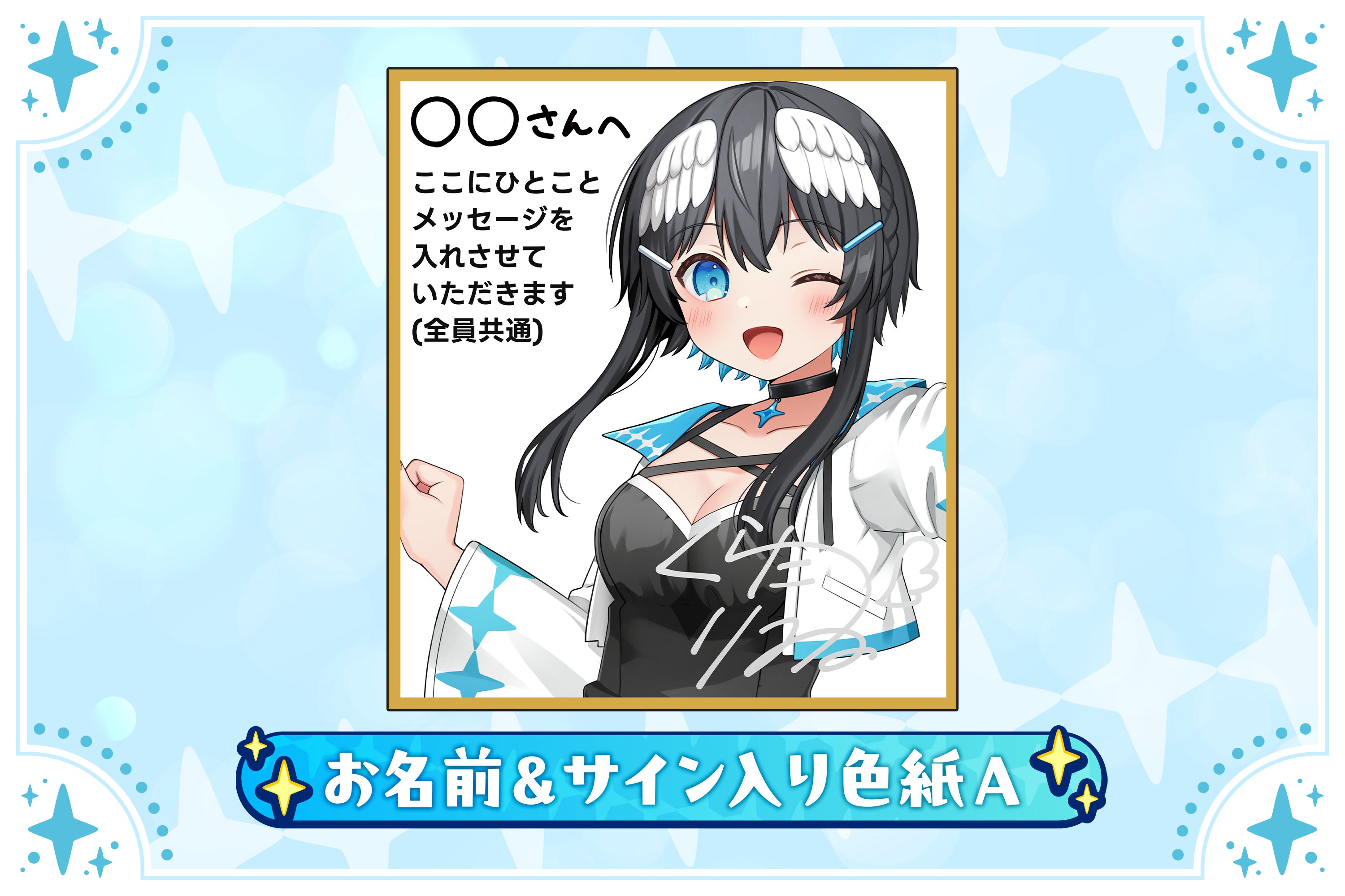 クラウドファンディングのために描き下ろしたイラストに、あなたのお名前と直筆サイン、ひとことメッセージを入れた色紙です。