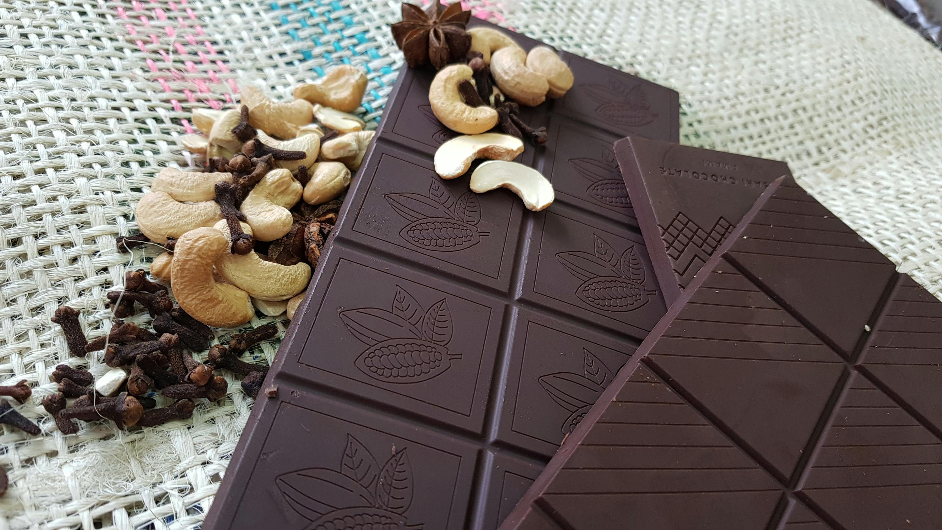 ●Bean-to-Barで作られた板チョコ(カカオ70%、カカオニブのトッピング)