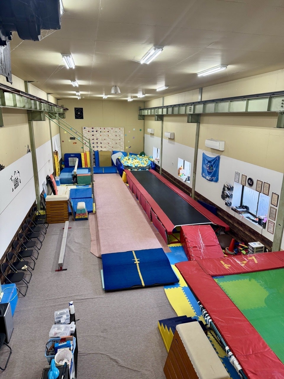その為子どもたちが安全によりのびのびと練習できる広さを確保し、選手を目指したい生徒には段違い平行棒などの競技用器具を設置し、最高のパフォーマンスを発揮できる場を提供し、体操が好きな子ども達も選手を目指す子ども達も共存し高め合いながら練習できる環境を整えたいと考えております。