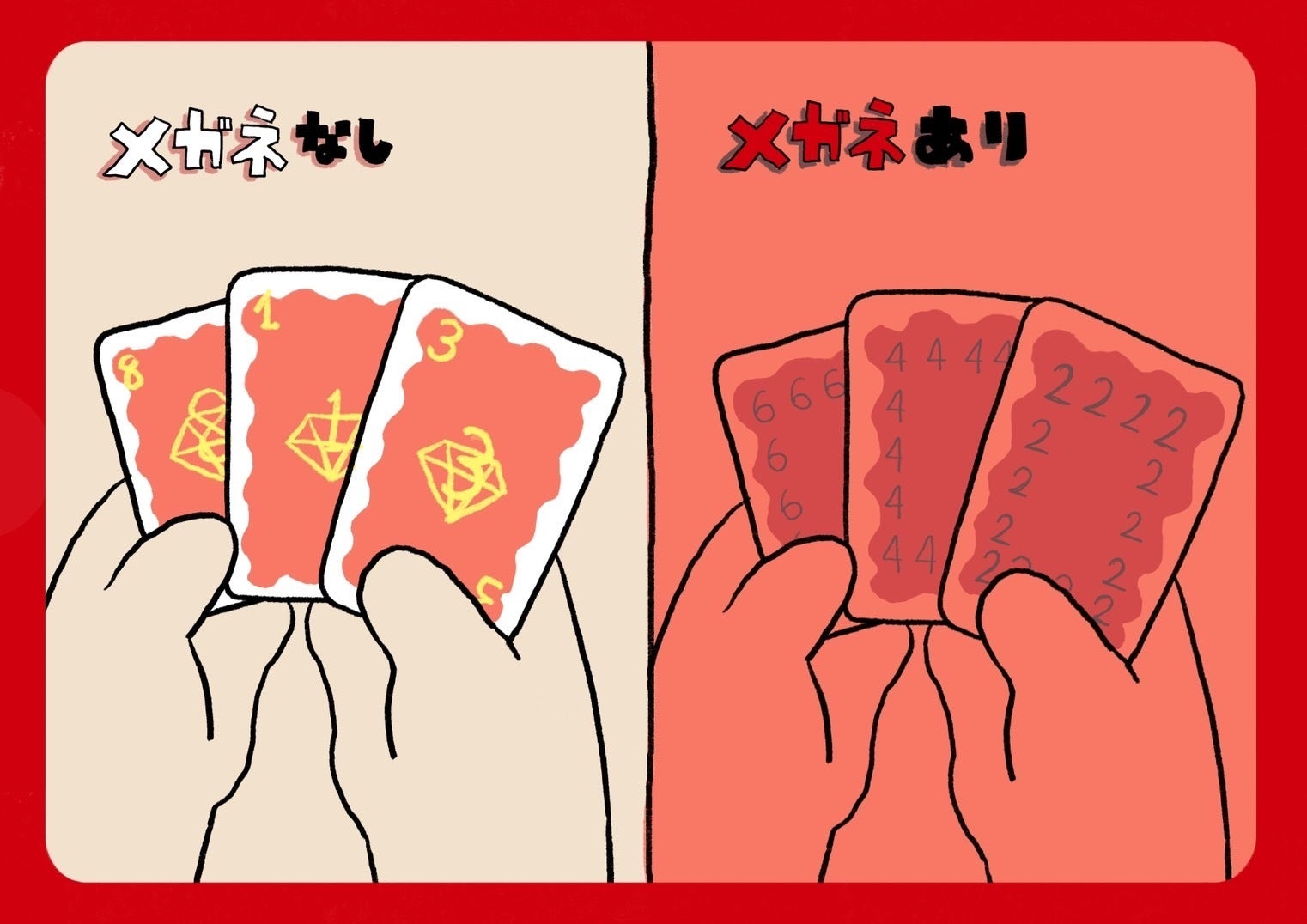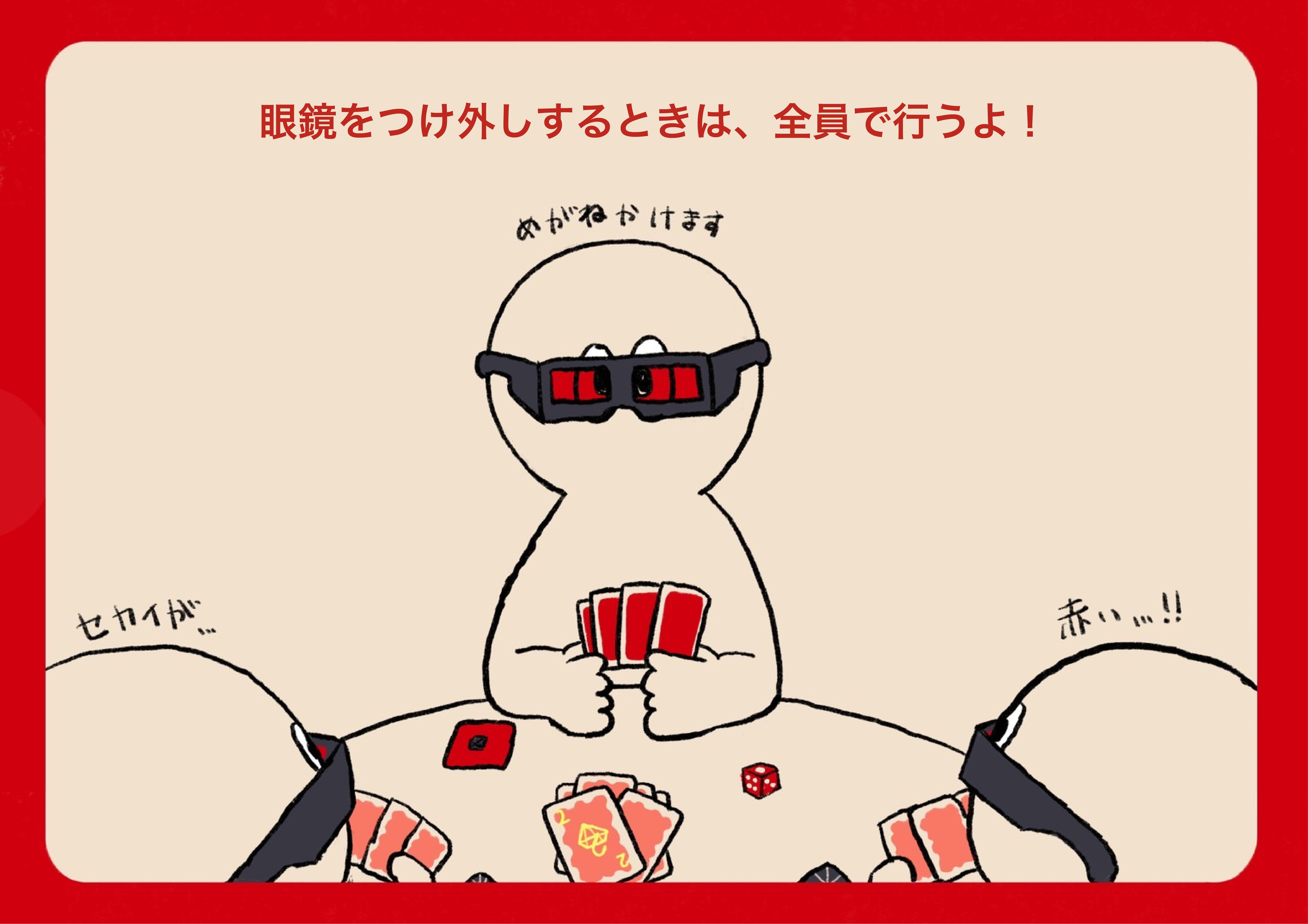 赤シートを被せると赤い文字が見えなくなるのって、当たり前のようで、よく考えると不思議ではありませんか?中高生のときは暗記するときに使っていた赤シートを、ボードゲームに応用してみたら…?という発想から、カードゲームを作りました!『ルビーアイの大富豪』は、特殊な眼鏡で見え方が変わるカードを使って、トランプゲーム「大富豪」をする、新感覚なカードゲームです!