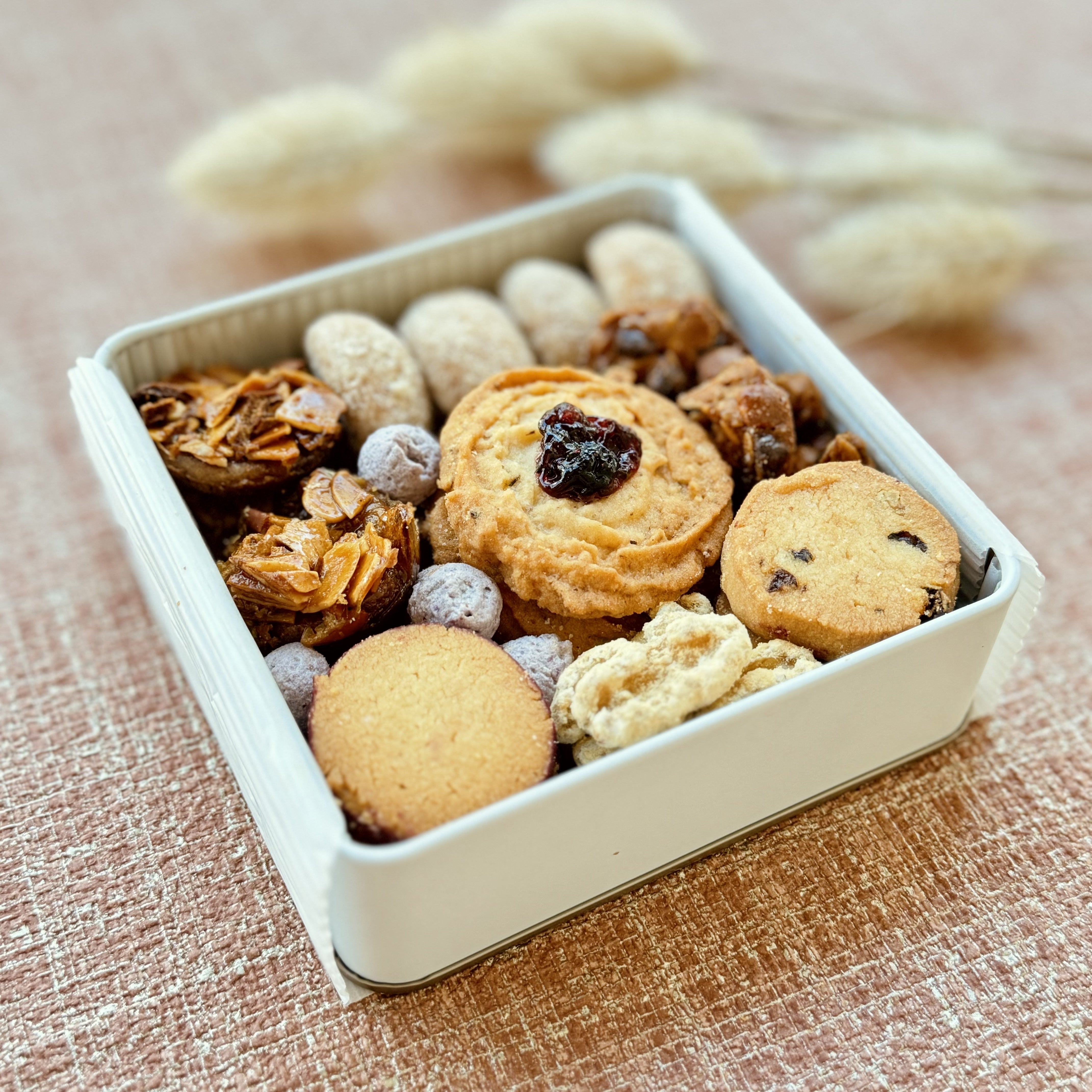 此処菓子店の代表スイーツ・米粉のクッキー缶のほか、岩手県産のお米とのセットや、お野菜とのセットなど、食を豊かに楽しんでいただけるセットを色々とご用意させていただきました。