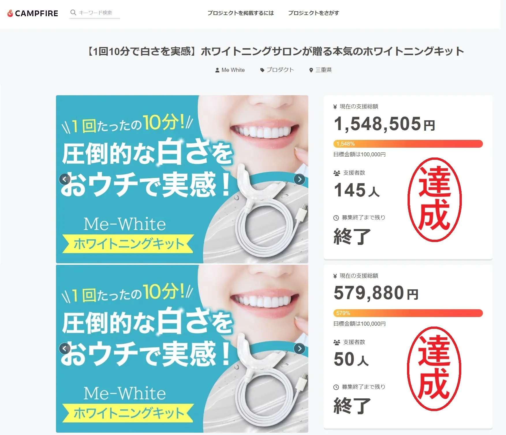 2025/04/24 19:06日頃より、多くのご支援ありがとうございます。「追加用ホワイトニングジェル」のリターンを販売致しますので、ご案内させて頂きます。■こちらでもうすぐ開催■https://camp-fire.jp/projects/844785/preview?token=aow70xdy&utm_campaign=cp_po_share_c_msg_projects_show(※おうちで本気ホワイトニング2個目のご購入もオススメです。)この機会に是非、お気に入り登録を済ませてプロジェクト公開時にご利用下さいませ。引き続き、おうちで本気ホワイトニングをどうぞよろしくお願い申し上げます。 もっと見る本日、全リターンの発送が完了しました。