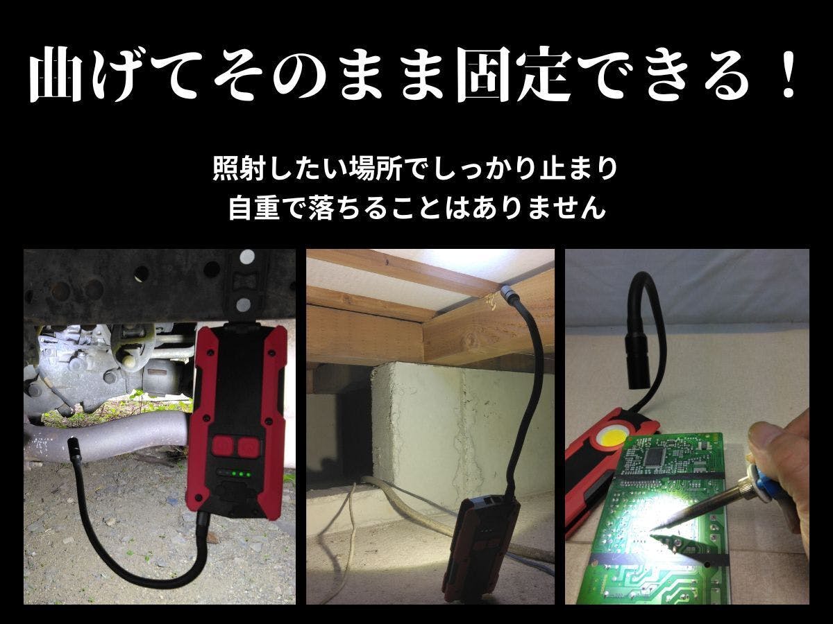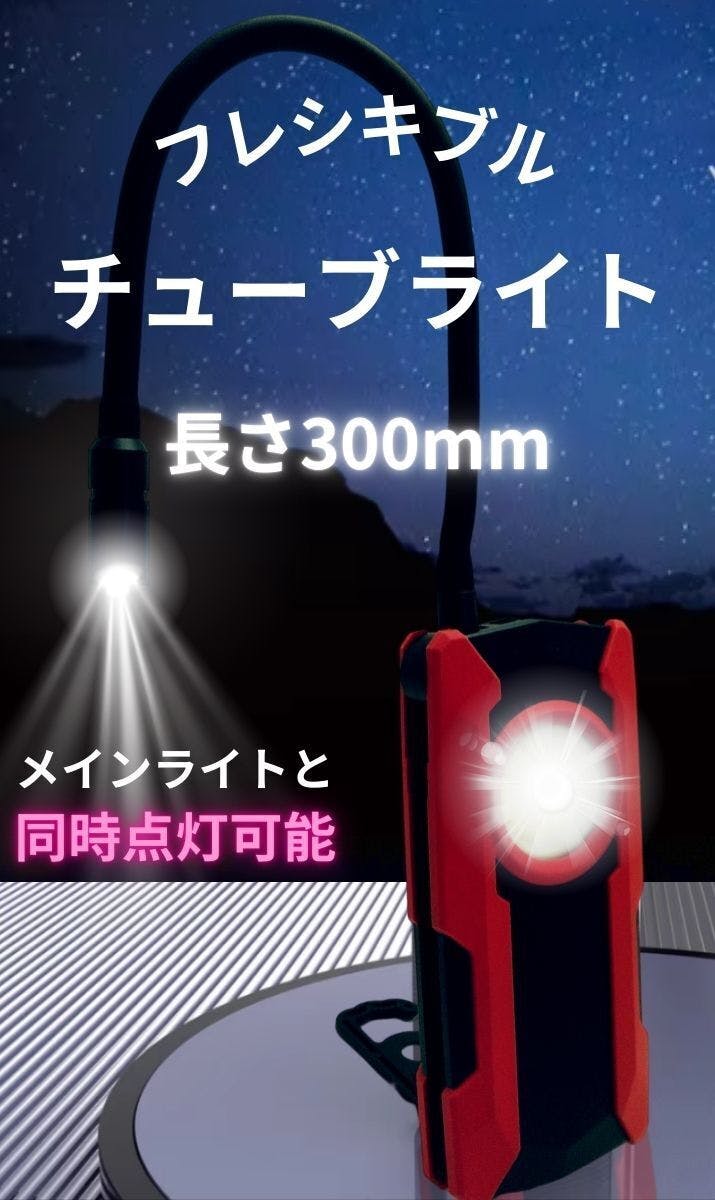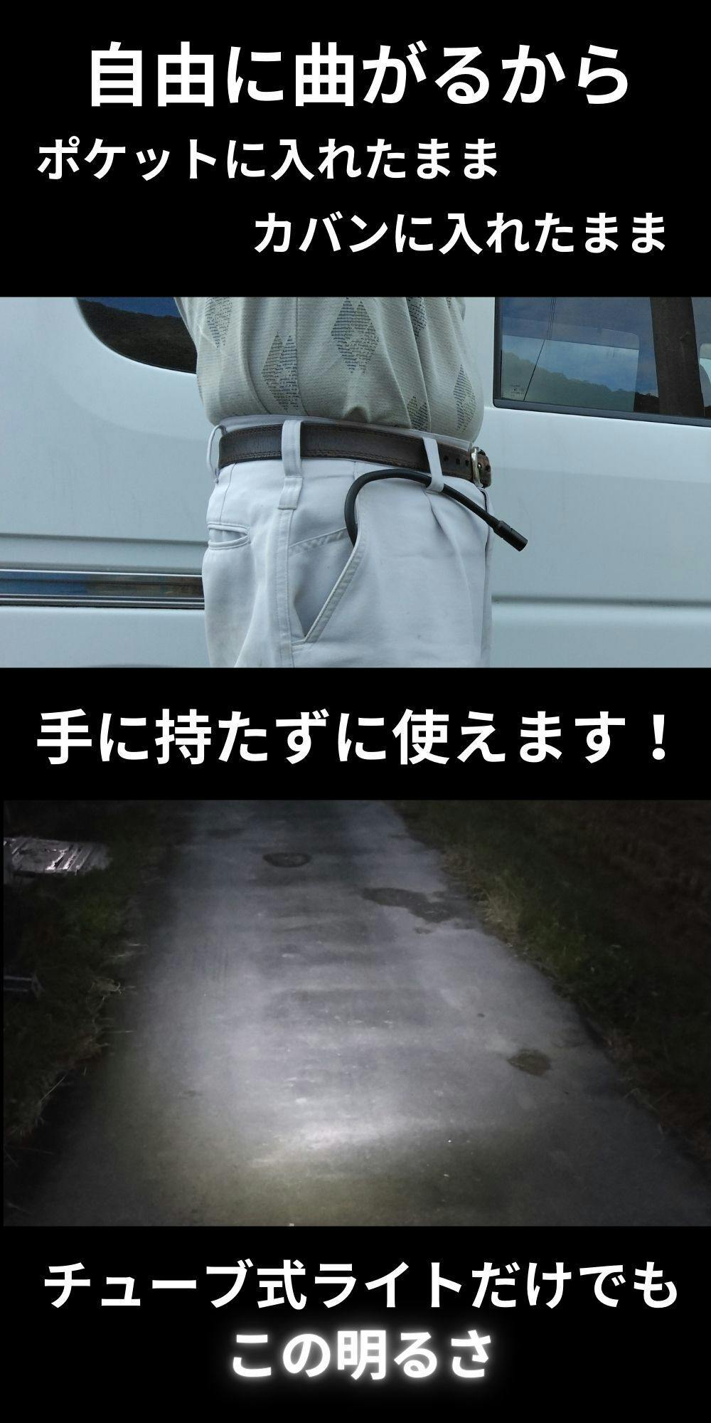 ・自由に曲がるフレシキブルチューブライトーブライト搭載!狭い所でも奥まで照らす