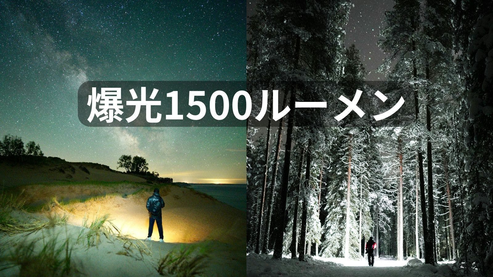 ・超広角LEDと1500ルーメンの明るさで昼間のよう明るさを実現!2つのライトは同時点灯可能