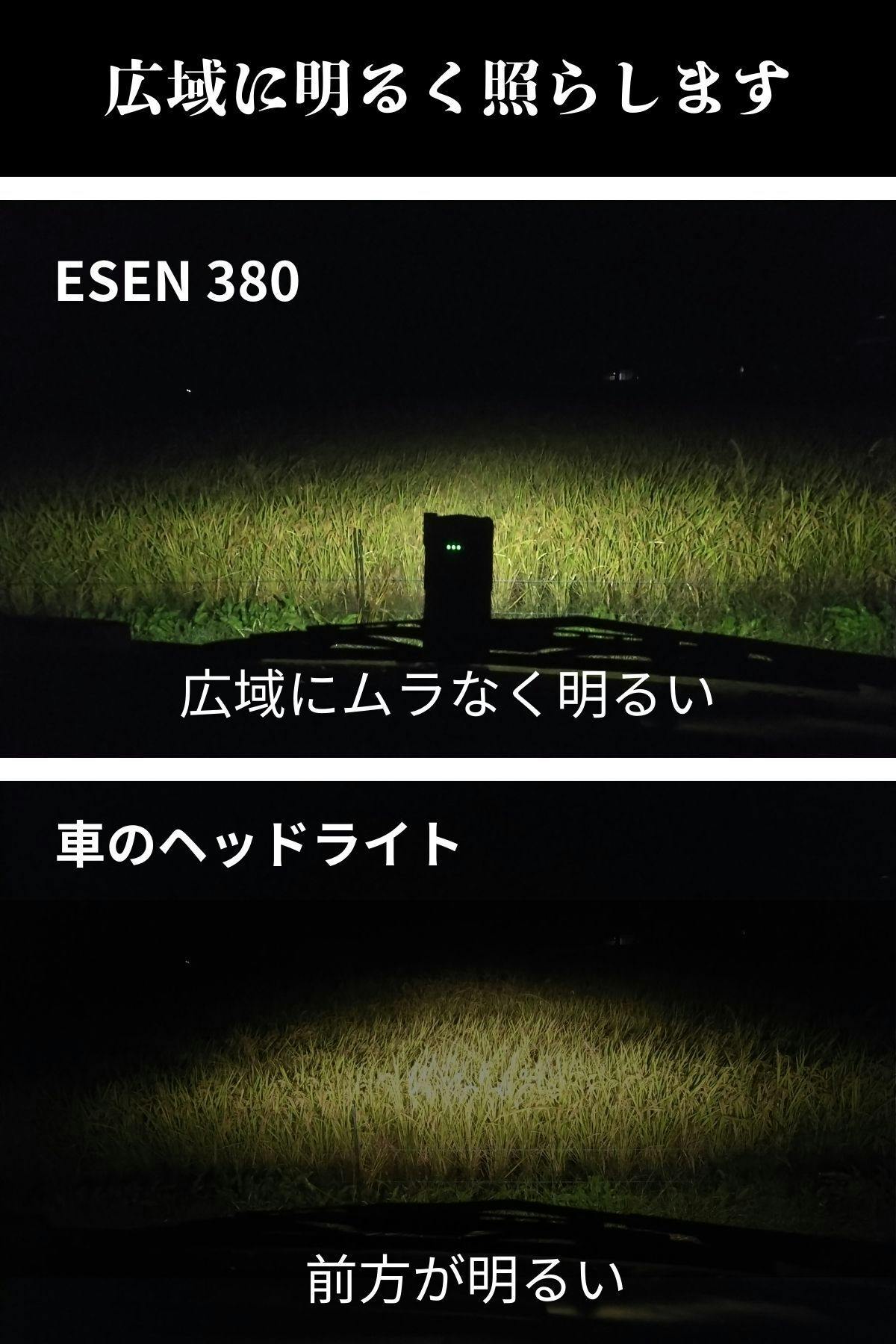 『ESEN 380』のメインライトは、全体をムラなく照らします。まるで昼間のような明かりで照らしてくれます。