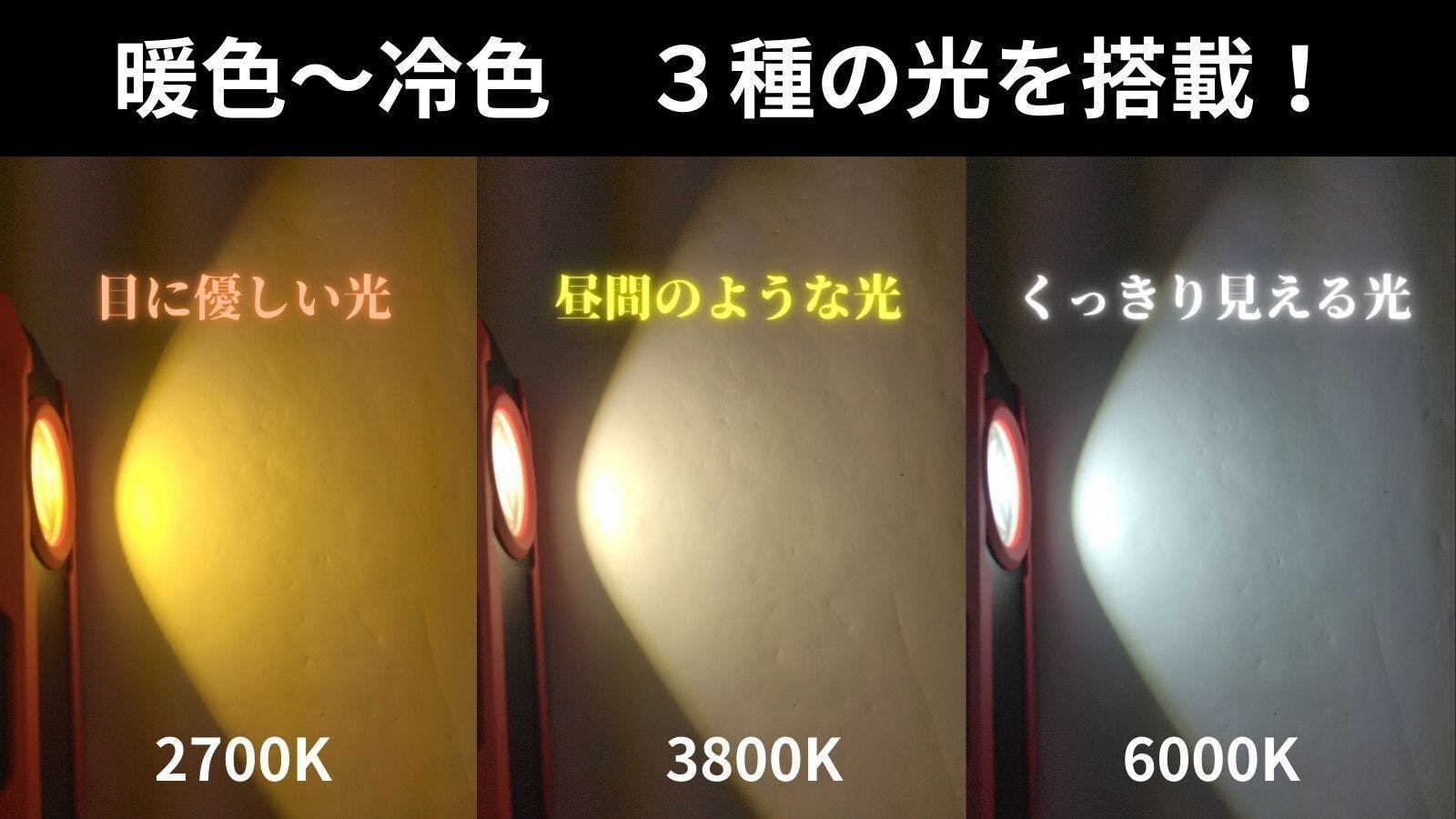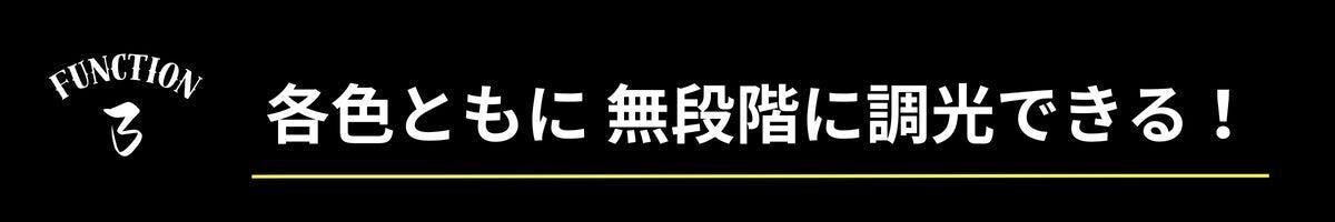 3種類の各色 無段階に明るさの調整が出来ます。これによって、明る過ぎる・暗すぎるといった不満はなくなります。