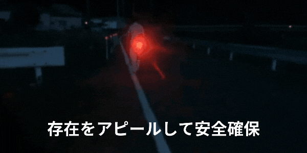 災害時だけではなく、普段の夜道での注意喚起・安全確保にも役立ちます。シーンに合わせて、フレシキブルチューブライトの点滅と使い分けても便利です。