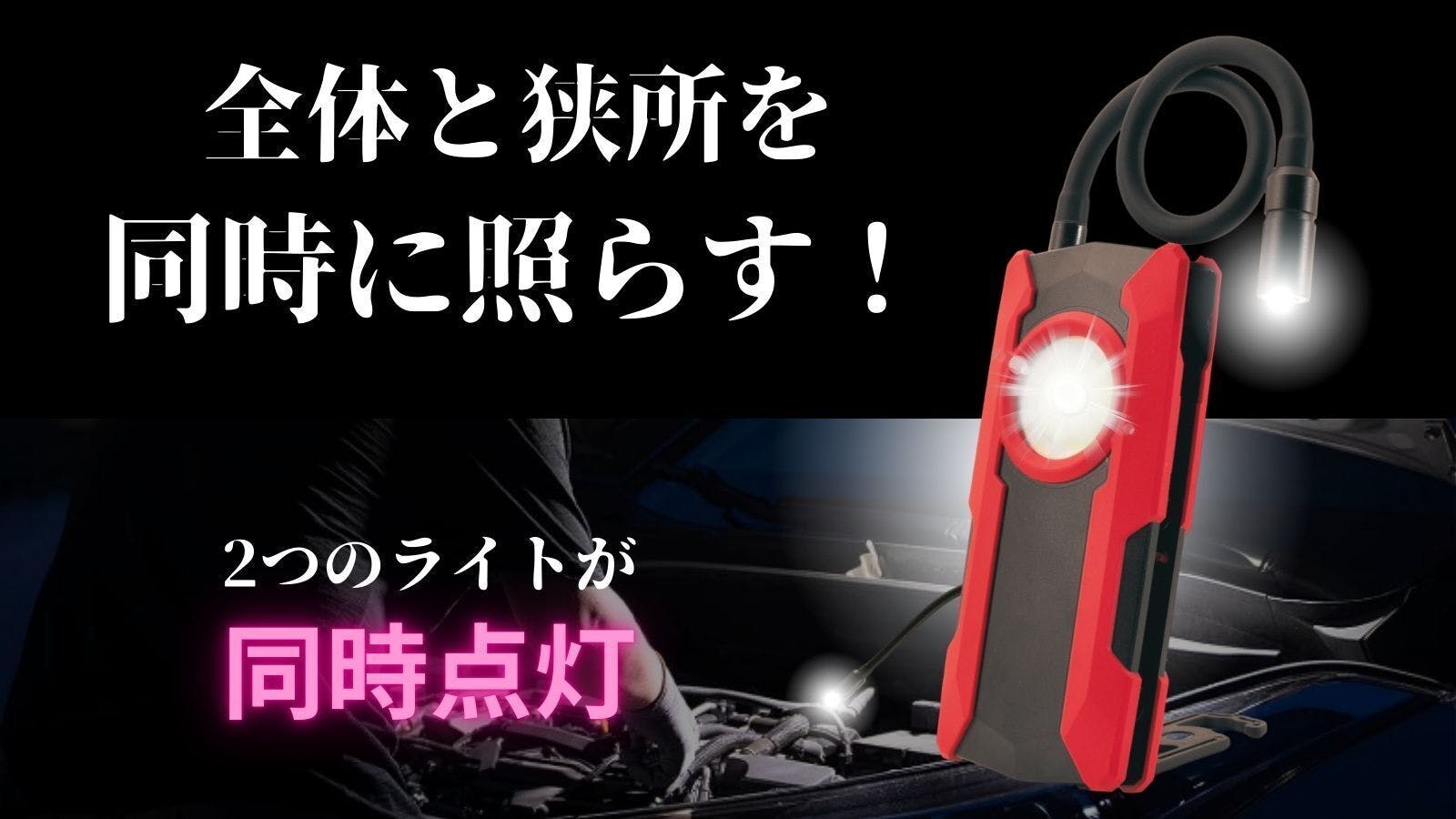 メインライトとフレシキブルチューブライトは同時点灯可能! 全体と狭所、同時に照らす事が出来ます。