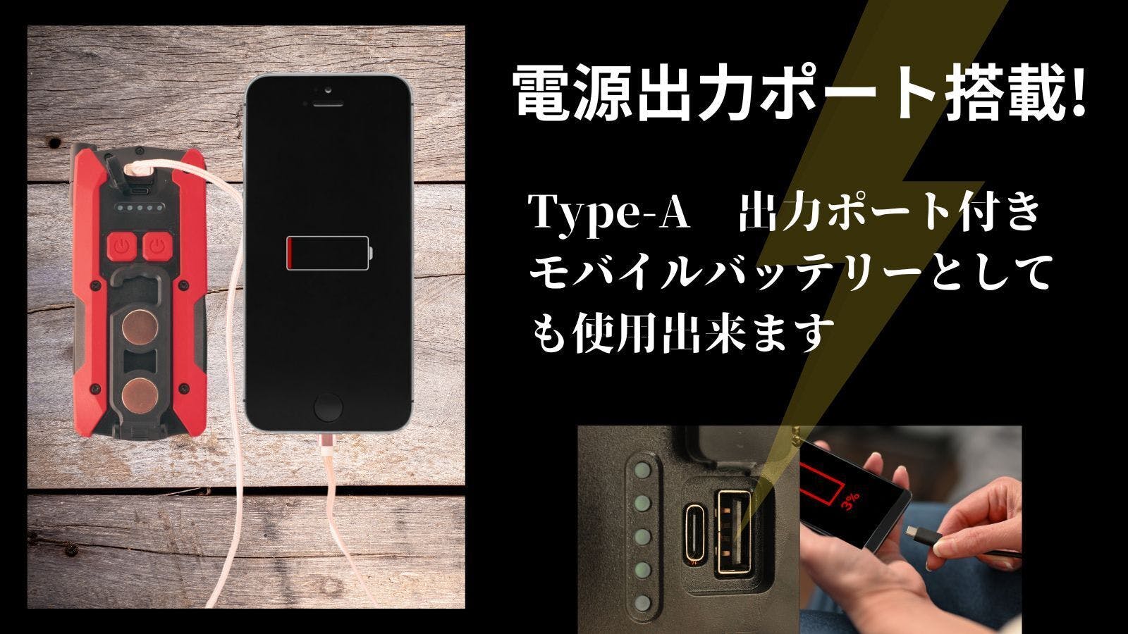 ・出力ポート付きでモバイルバッテリー機能搭載!LEDライトなのにスマホ充電も出来る