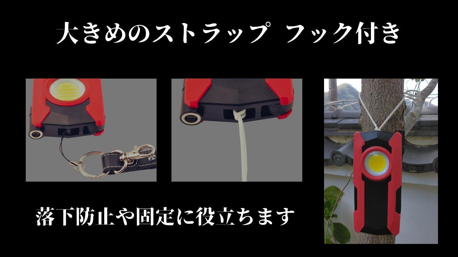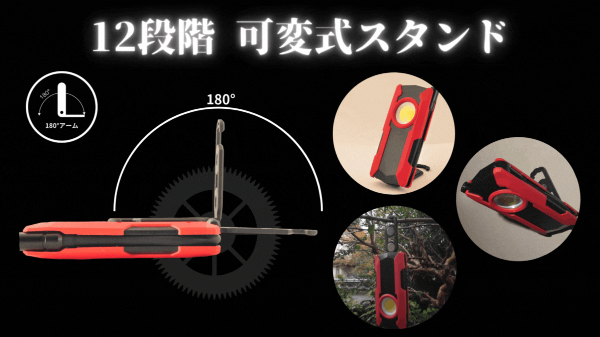 台の上に置いて使用したり フックで吊り下げて使用出来ます。マグネットと併用すれば真下を照らすことも出来ます。