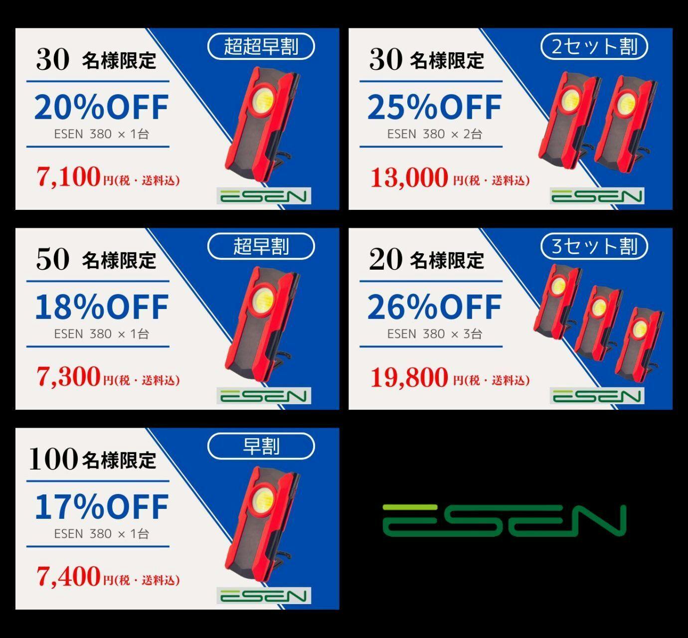 ☆当製品の配送が完了するまで、MTC INTERNATIONALはESEN380の日本における独占販売権を有する正規代理店です。メーカー:https://www.nhesen.com/事業内容:LEDワークライト関連