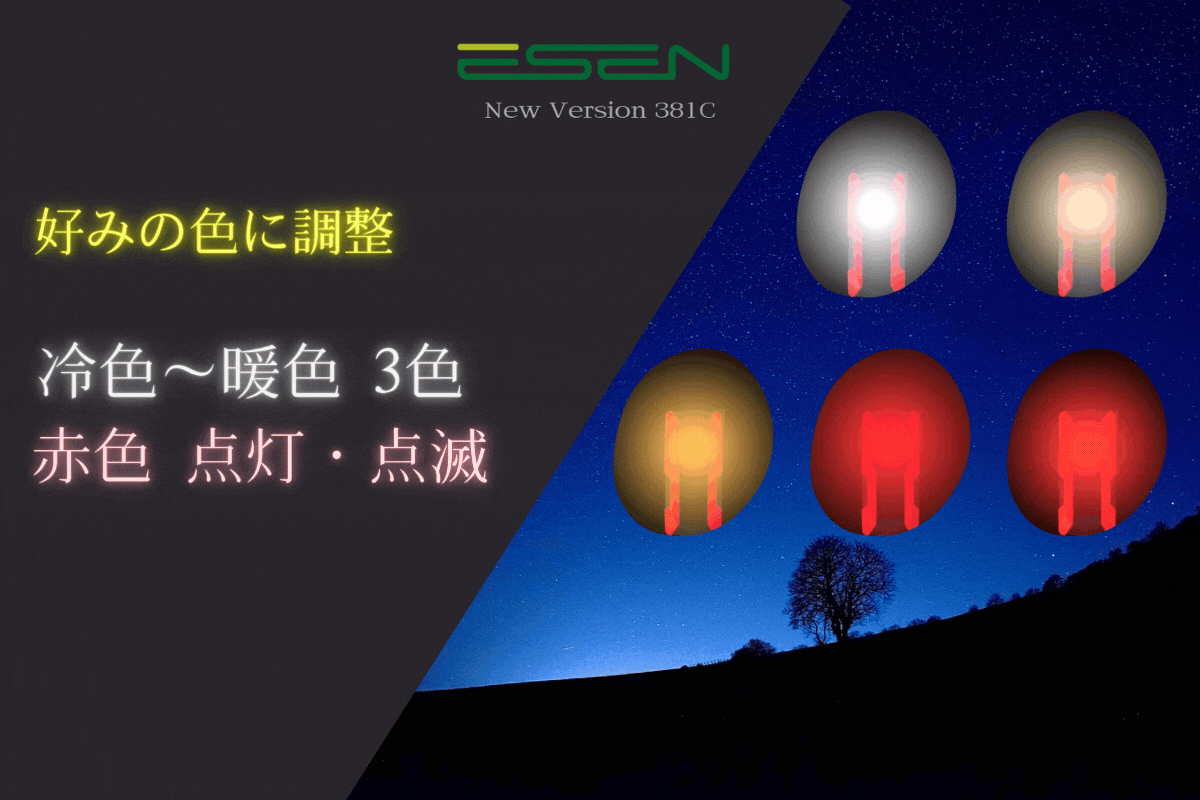 『ESEN 380』は、シーンのよって使い分けが出来る3種+2種 合計5種の光源をご用意しました。ローソクの炎のような優しいオレンジ色から昼光色のようにくっきり見える青白色まで使い分けがボタン一つで可能です。