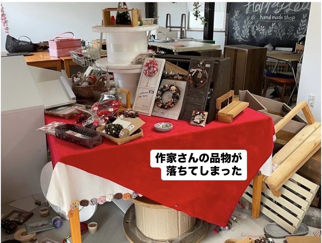 店舗は半壊してしまいました。入口のドアもまったく開かなくて、商品の多くが落ちて壊れて、棚も倒れ、壁には大きな亀裂が、天井からは空が。営業を再開できる状態ではありませんでした。