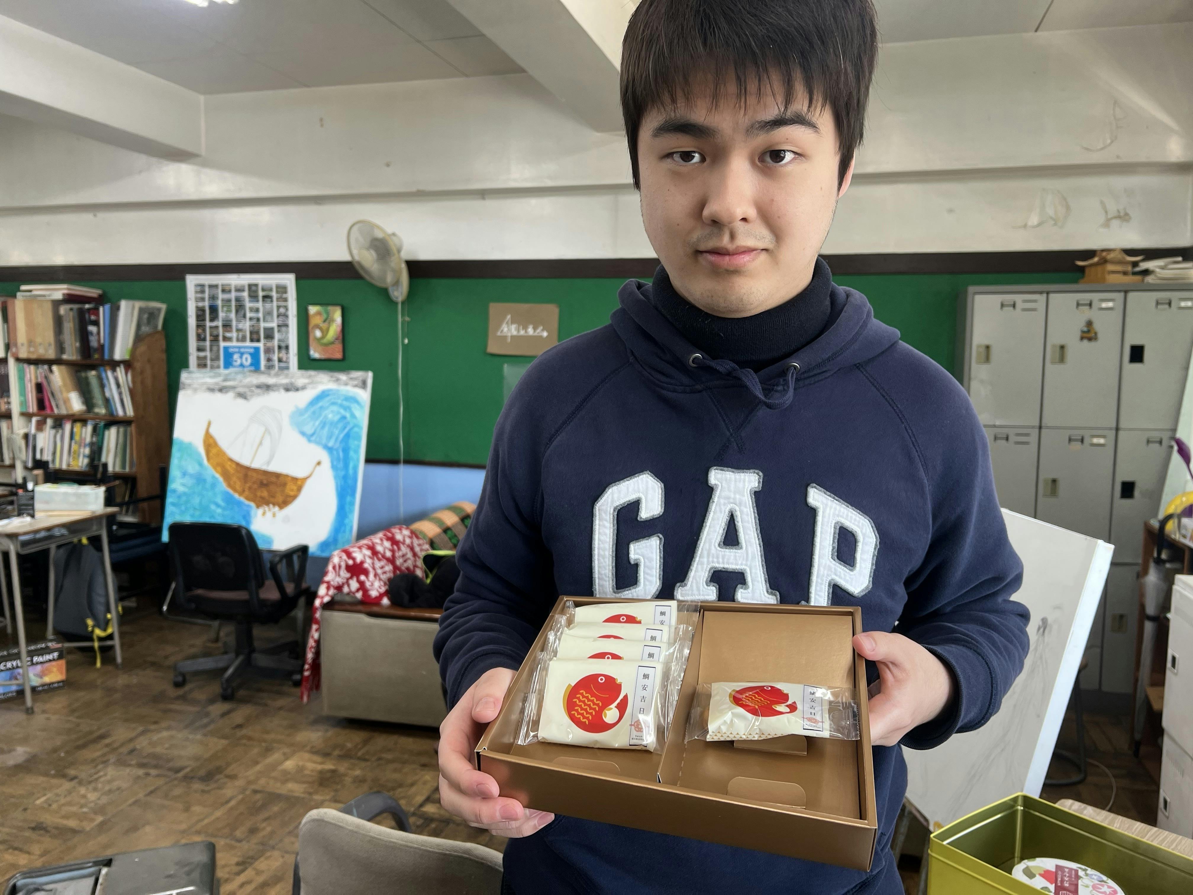 新年、美術部に差し入れとしてお土産を持ってきてくれました。