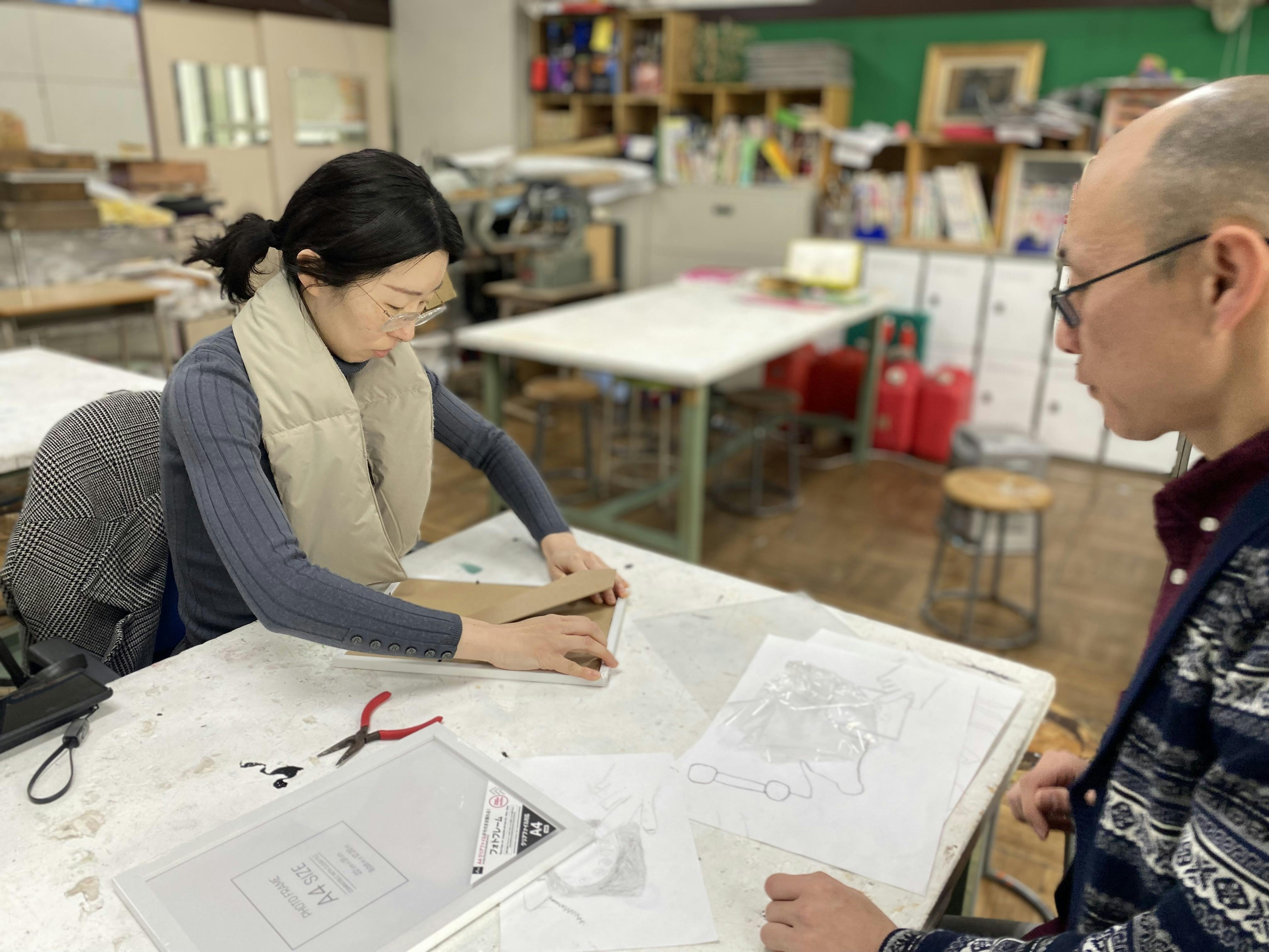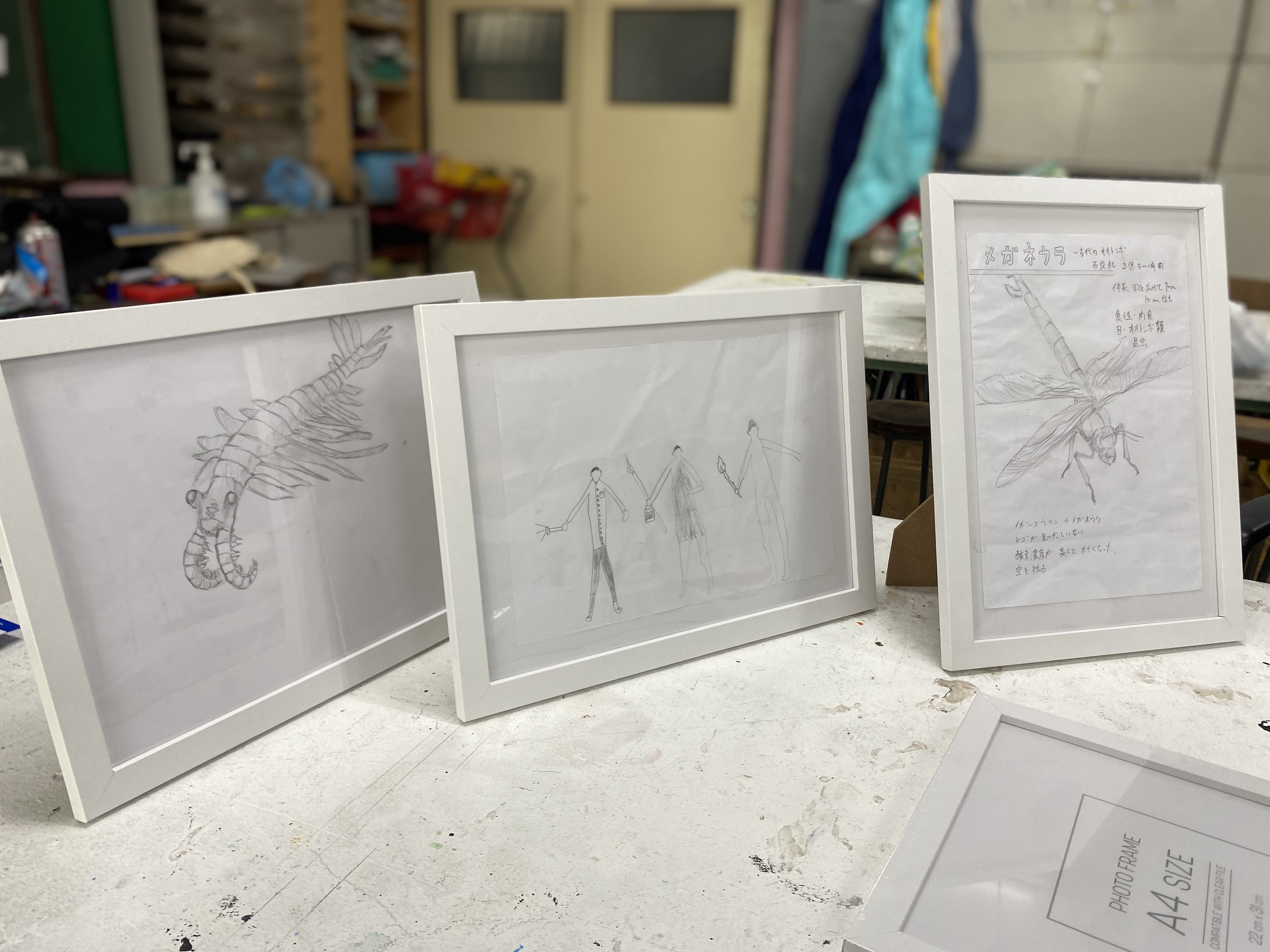 写真は生徒さんたち直筆の「エスキース」(作品構想のための素描)です。