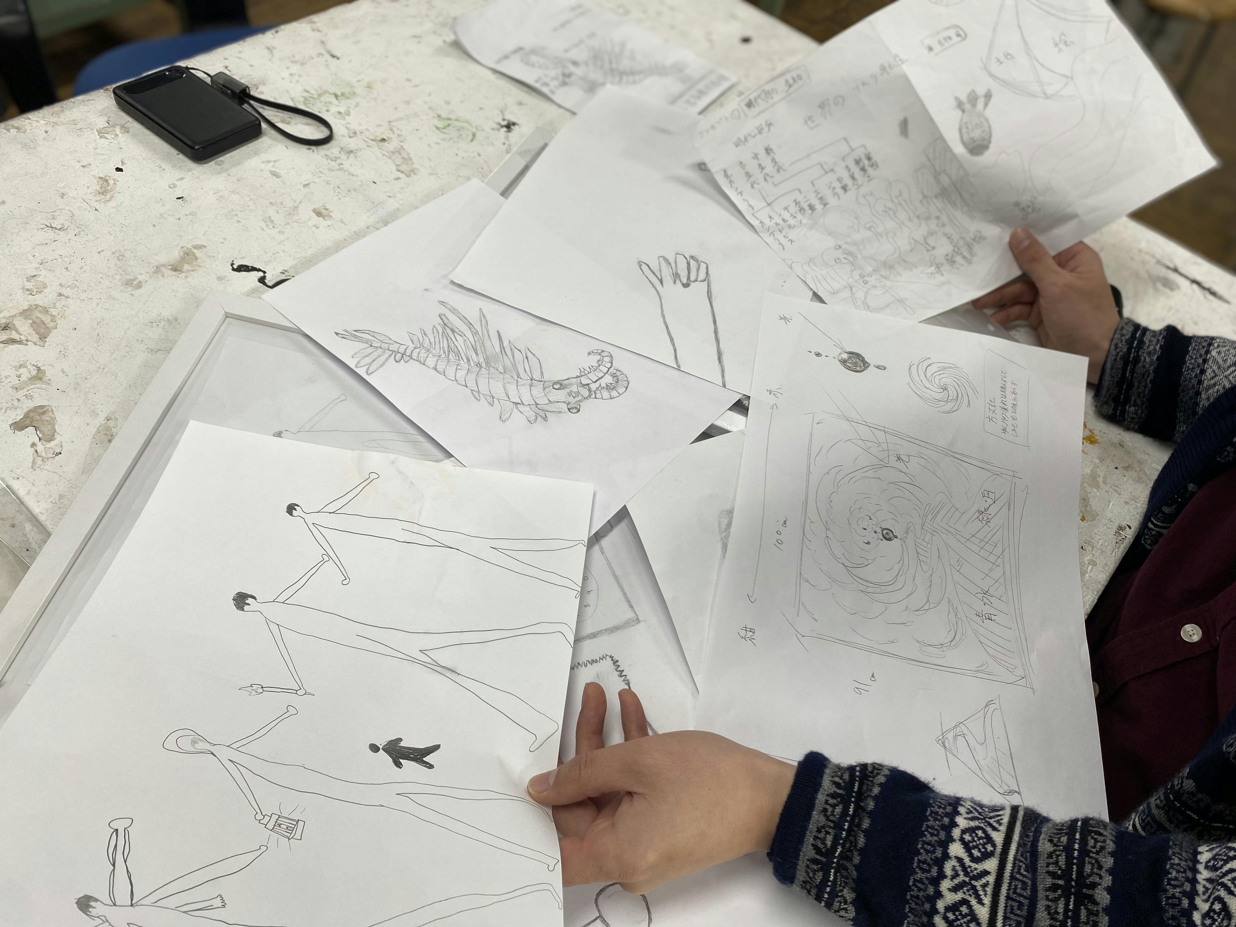 いずれも今回の美術部展「流転」に出展する作品構想のために描かれたもので、世界に一点しかない貴重なもの。