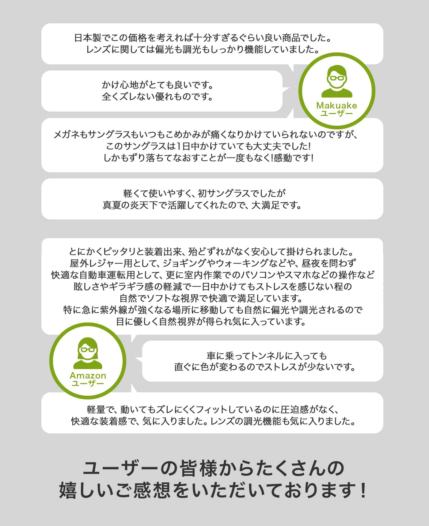 偏光・調光・UVカットが一体になったレンズは、高機能で快適な視界を提供してくれます。