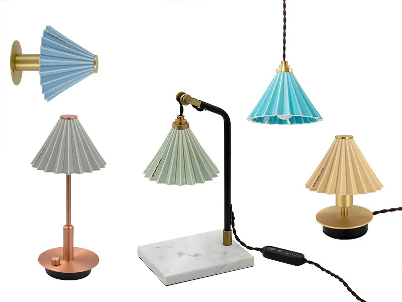 左からブラケットライト、ポータブルライト、キャンドルウォーマー、ペンダントライト、テーブルライト