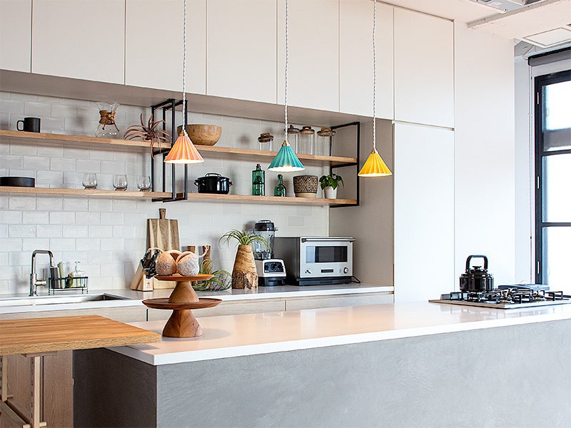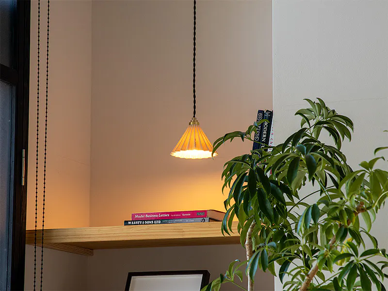 A. シェードは日本製(岐阜県)、照明パーツは中国製(企画設計はグラムエイト)、製品組み立ては株式会社TIC(東京都墨田区)で行っております。