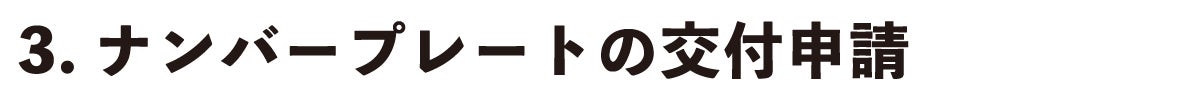 公道を走行するには「軽自動車税申告(報告)書兼標識交付申請書」の提出(ナンバー登録)が必要です。下記をお持ちのうえ、各市町村役場でお手続きください。