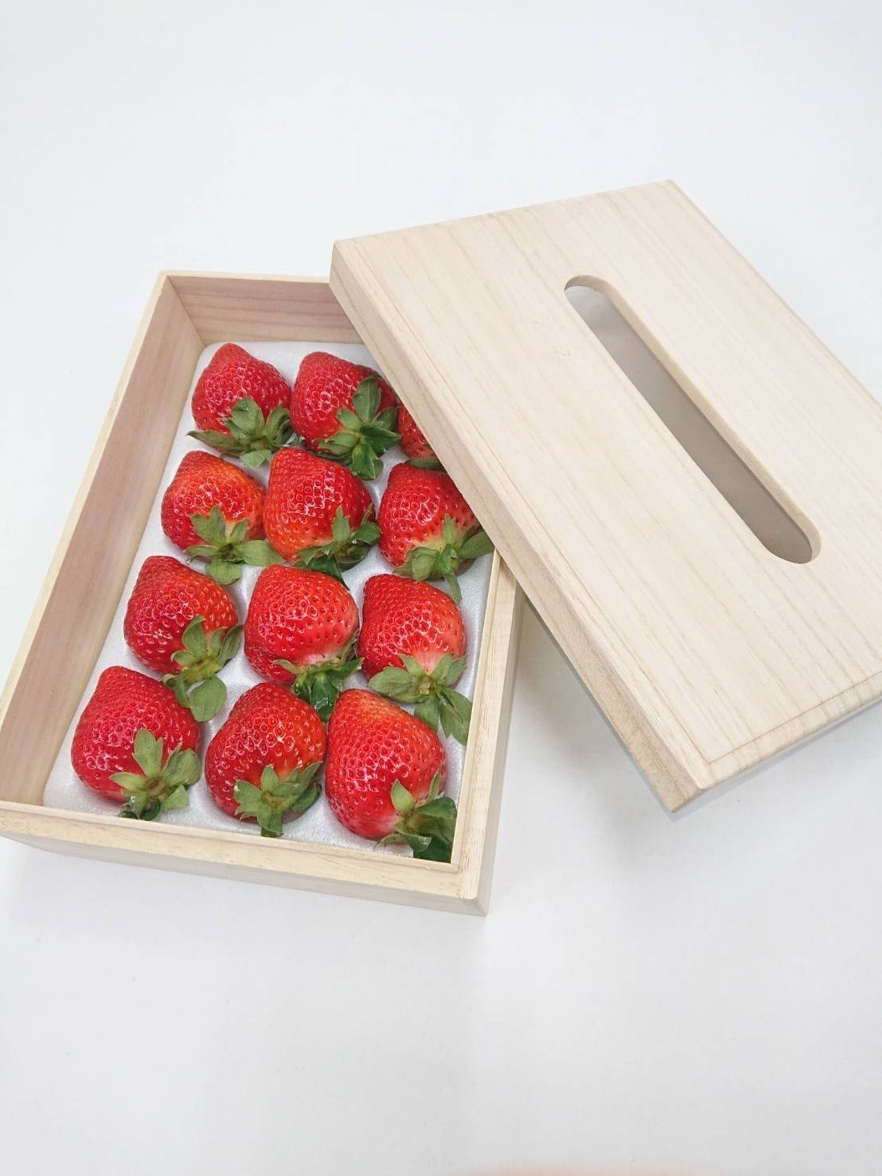 特別仕様の桐箱にあまおうを詰めてお届けします。ティッシュボックス用 特別仕様の桐箱入りプレミアムあまおう あまおうEX400g×1パック 【ギフト・お祝い・贈答用】