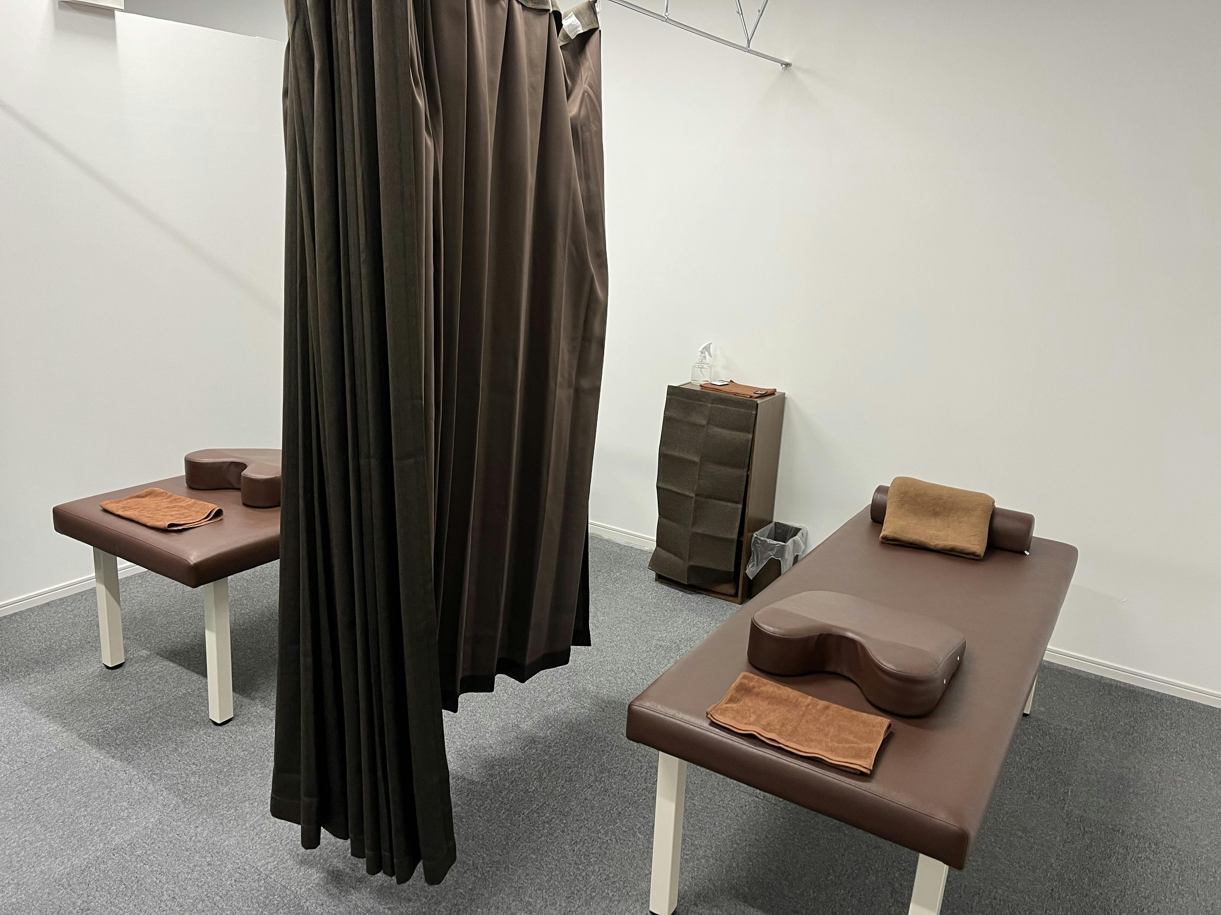 ベッドは一台一台が広々としたスペースの施術室(ベッドは3台)