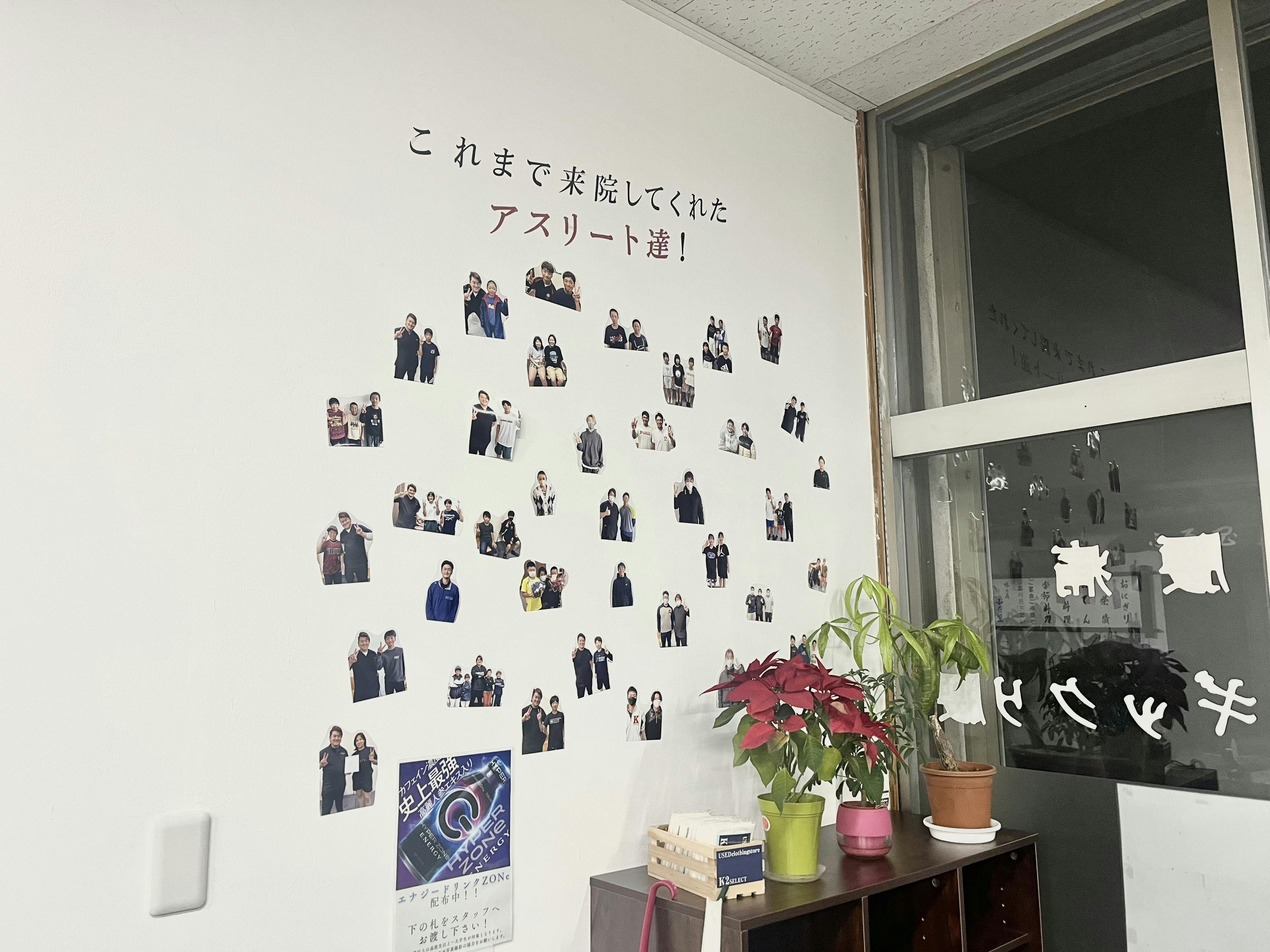 これまでに来院いただいたアスリート達の紹介エリア。大好きなスペースです!