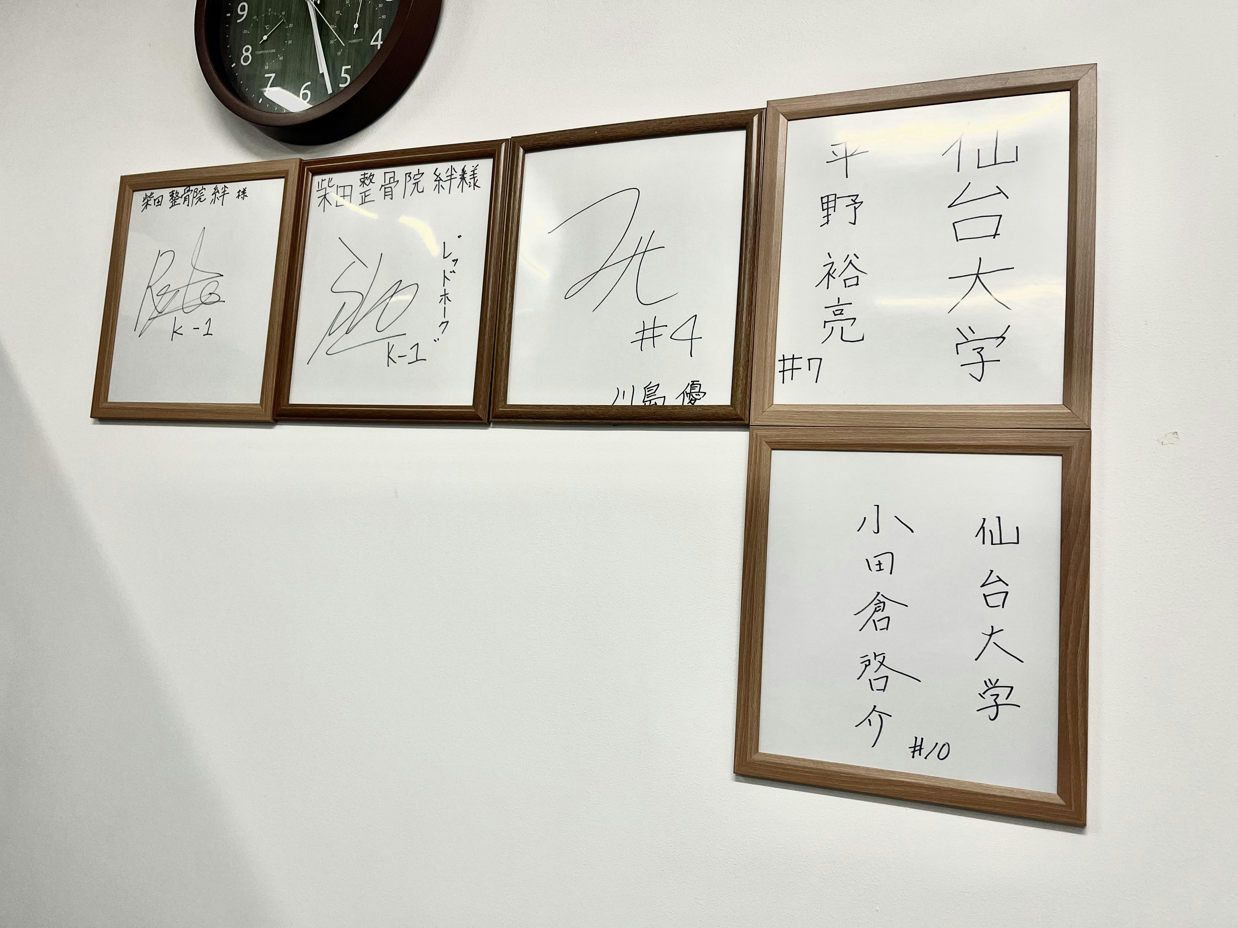その他にも柴田町出身のK-1ファイター、仙台大学から初の夏季オリンピック選手やドラフト3位でプロ野球入りをされた仙台大学野球部、福島レッドホープス所属選手、東北楽天ゴールデンイーグルスJr選抜選手など数多くのトップアスリートにご来院いただいております!