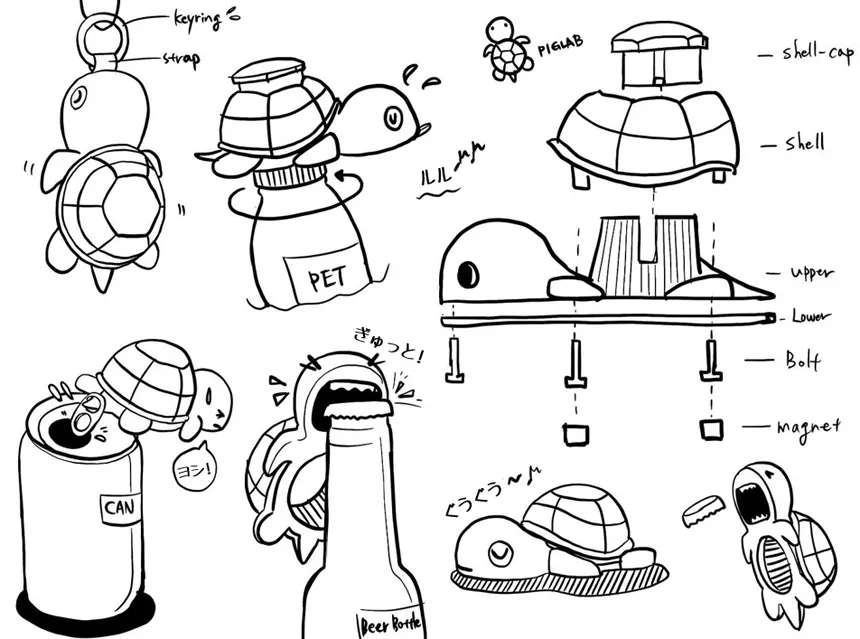 多用途ウミガメのオープナーを製作しながら意外と手首の筋力が足りない方が多いことに気づき、日常生活でささやかに感じる不便さをできれば1つのオープナーでいろいろ使えるようウミガメのデザインに入れました。