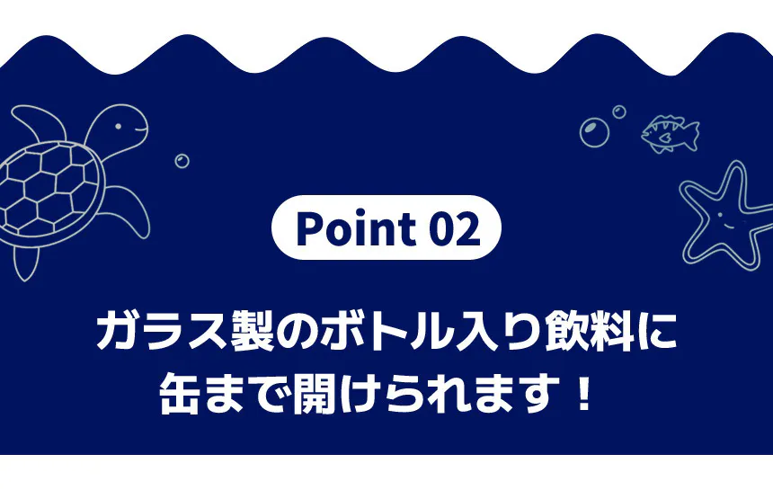 亀の甲羅を持ってビール瓶にオープナーを固定して持ち上げると簡単にオープンできます。